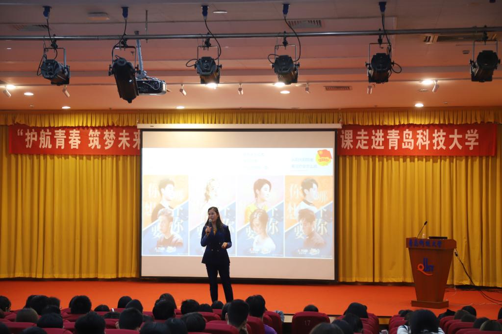 山东省总工会职工心理健康服务专家张馨匀现场进行授课,她从大学生爱国主义教育、防艾禁毒教育、防范电信诈骗教育、防范校园霸凌教育、防范传销和网络贷教育、反邪教知识教育、防范创业法律风险教育等七个方面,结合鲜活的事例和数据,为现场同学介绍了青年学生的安全自护教育现状、面临的潜在风险等,告诉大家如何培养和弘扬爱国主义精神,教会大家如何预防艾滋病和毒品,如何防范电信诈骗、校园霸凌、传销和网络贷、邪教传播、创业法律风险等。