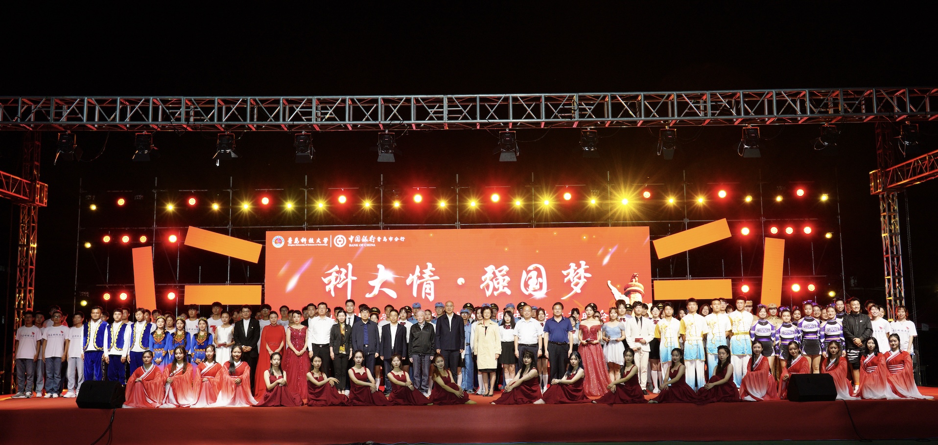 9月28至29日,“科大情·强国梦”2021年迎新生庆国庆师生文艺晚会分别在四方校区西礼堂和崂山校区体育场隆重举行。晚会开始前,党委书记马连湘向全体2021级新生表示欢迎和问候,向受表彰教师典型表示祝贺。校长陈克正,中国工程院院士、766全讯白菜网电工材料研究院院长雷清泉,校领导张淑华、姚锋、李勇、吕万翔、丁林、聂法良、陈刚、张洪坤,中国银行青岛分行团委书记谭丽娜出席晚会。