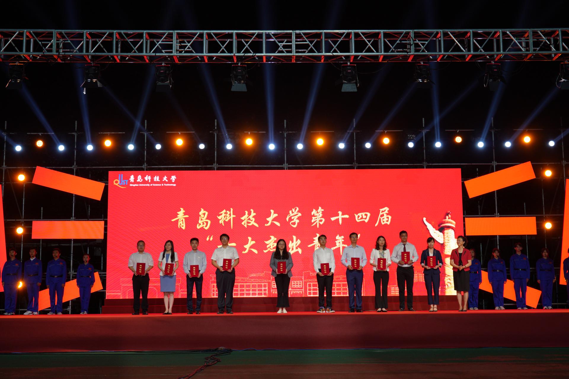 学校各相关职能部门、学院负责人,教师代表,校学生会、研究生会轮值主席及2021级全体新生现场观看了晚会,高密校区和中德校区师生通过线上直播观看演出。