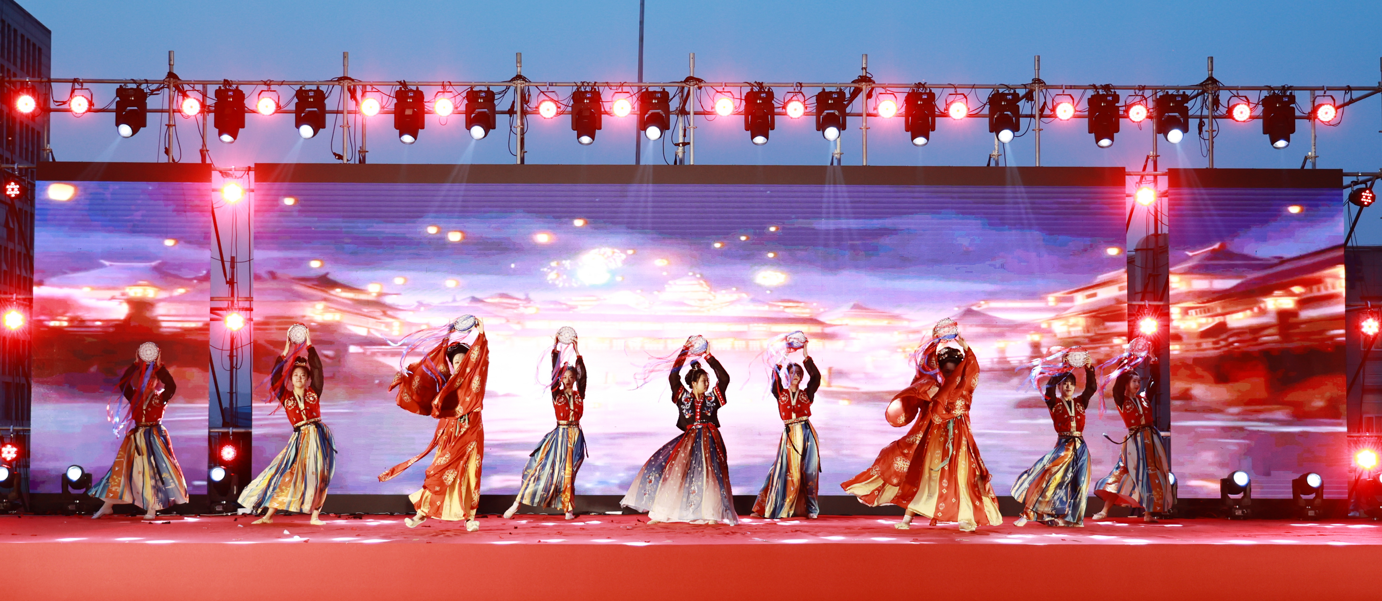 大学生艺术团伴着悠扬的音乐翩翩起舞,带来民族舞《秦淮景》,传统与现代的融合,音乐与舞蹈的碰撞,体现时代精神,凝聚民族力量。