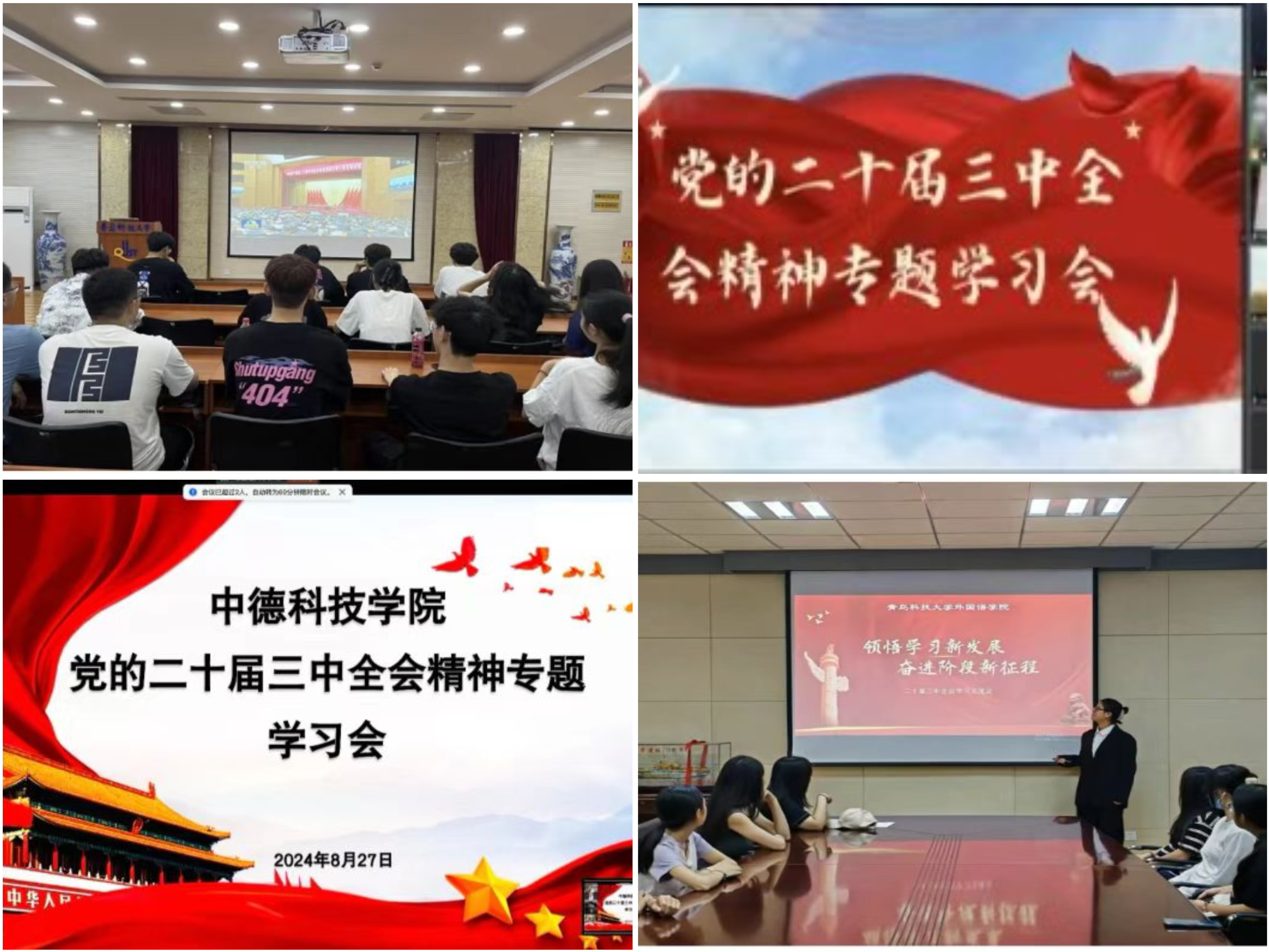 近日,校学生会在崂山校区图书馆1011室举办党的二十届三中全会精神学习会,校团委相关负责人、校学生会全体成员参加学习。会上,学术部负责人李鹏达领学了《中共中央关于进一步全面深化改革 推进中国式现代化的决定》《中国共产党第二十届中央委员会第三次全体会议公报》,全体与会人员结合学生会实际工作进行了交流研讨。会后,校学生会面向全校广大同学开展了青年学生党的二十届三中全会精神知识竞赛,坚持以赛促学、以赛促练,引领广大同学坚定拥护“两个确立”、坚决做到“两个维护”。