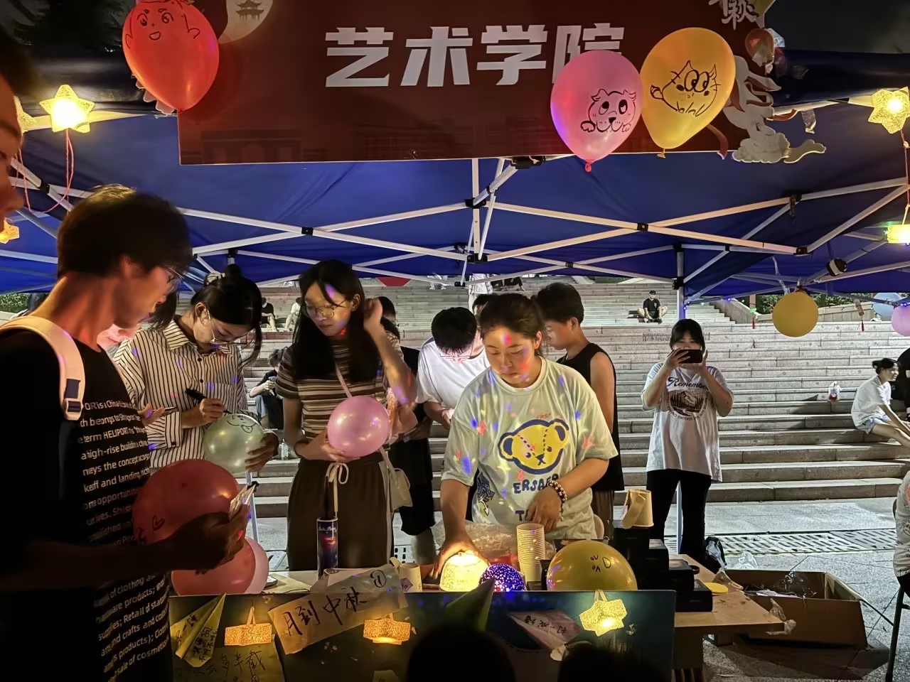 艺术学院团委开展“中秋共庆,‘艺’‘新’同行”系列活动,让全体新生在猜灯谜、送祝福、投壶投福、做花灯等活动中拉近距离、增进感情,共同度过在科大的第一个中秋节。