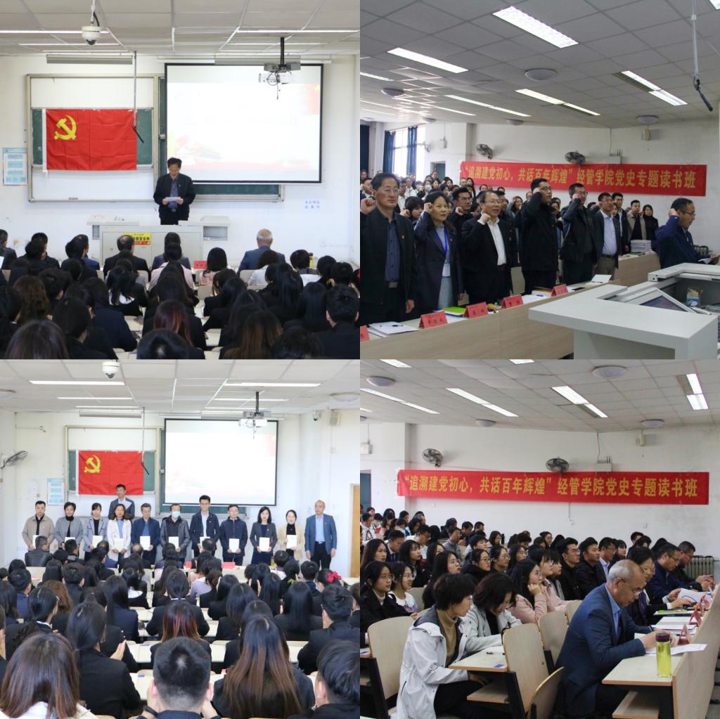 为深入学习贯彻习近平总书记在党史学习教育动员大会上的重要讲话精神,引导全体党员师生进一步学党史、悟思想、办实事、开新局,根据学校及学院党史学习教育方案的统一部署,4月13日下午,经管学院于弘毅楼E202教室组织举行“追溯建党初心,共话百年辉煌”党史专题读书班开班仪式,学校机关党工委常务副书记、党委组织部副部长秦姣、马克思主义学院院长曹胜出席会议,学院党委书记李德成、党委副书记、院长李勋来、正处级组织员王成果及全体师生党员参加了此次开班仪式。仪式由学院党委副书记兼副院长刘跃宁主持。