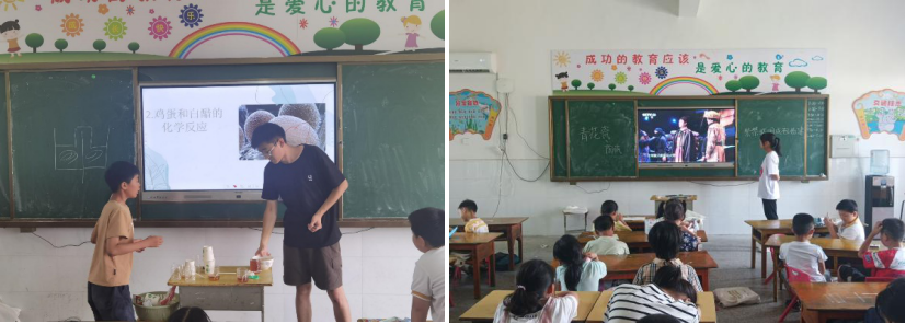 为提高孩子们的科学素养,助力乡村振兴,实践团队成员开展了以“科创”为主题的科学普及教育,通过开展趣味科普、科学实验课、科学生活课、科学人物等科学普及课程,让孩子们感受古代科学技术的伟大和悠久的历史,增强了孩子们的民族自信心和科学探索的好奇心。