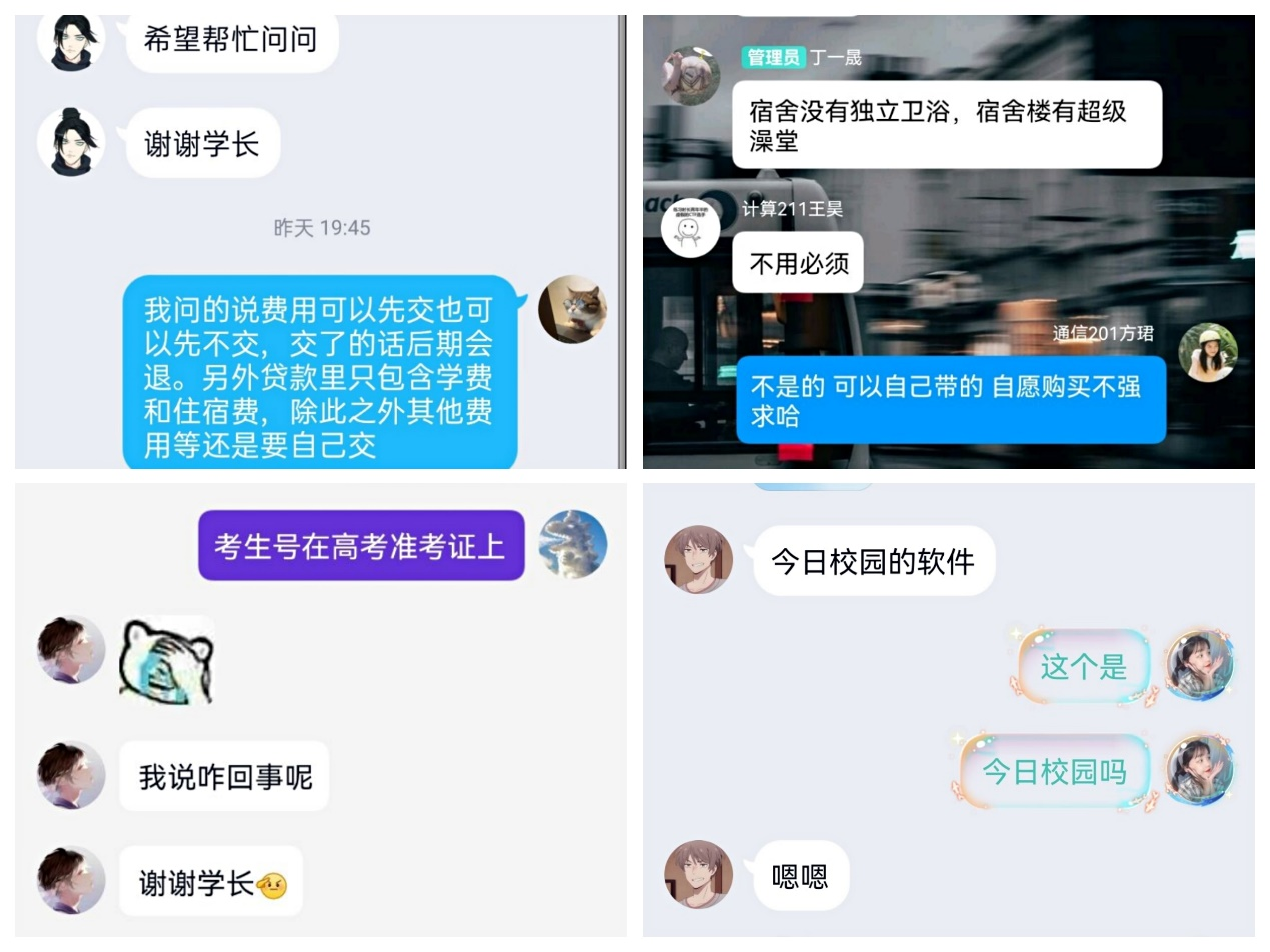 在进入到一个未知的环境中时,不免会产生许多困惑和问题,为了帮助新生更深入地了解校园环境,以便于入学后可以尽快适应学习和生活,各专业学长学姐在线为2021级新生解疑答惑。从高中到大学是一场重要角色的转变,对于2021级新生亦是一种挑战。不论是专业学习方面问题,亦或者是生活方面问题,学长学姐都耐心解答,将自己的经验毫无保留地分享,帮助新生对未来的大学生活做好更加清晰明确的规划,以便更好地学习和生活。
