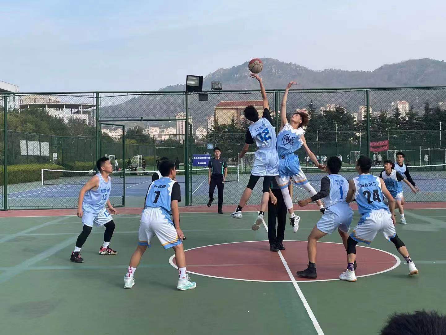 热身跑,跑篮训练,快攻训练,全场紧逼,罚球,全场对抗.......逐步推进的过程中身子热了起来,球场上的声音让人血脉偾张。“内切!”“左边有挡!”“篮板!”呼喊与奔跑,跳跃与微笑。球一遍遍进网,我们知道让我们团结在一起的是那个共同的目标。