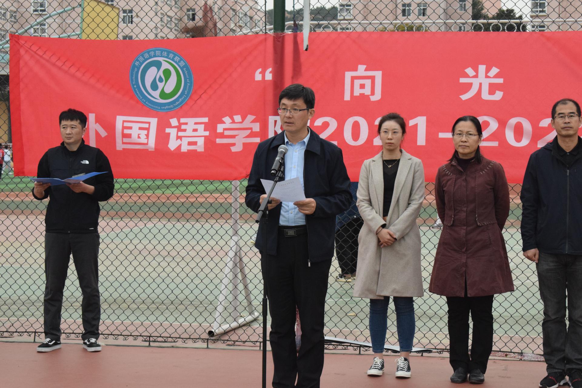 为贯彻落实习近平总书记关于体育强国建设的重要论述,响应学校体育综合改革,增强学生积极参与体育活动的兴趣,11月2日下午,外国语学院举行了“爱体育·兴科大”院体育联盟成立仪式暨4x100m接力决赛。校团委书记毛常明、学生工作处副处长曹永俊、外国语学院院长尹洪山、党委书记曲斌艳、全体专职辅导员和2021级新生参加了活动。活动由学院团委副书记兼学工办副主任李东阳主持。