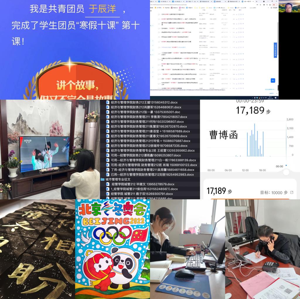 经管学院持续构建“五育并举”协同育人模式,助力学生实现黄金期“弯道超车”,强化德育提升素养,组织全体学生参与“传承红色基因、争做时代新人”红色征文活动并积极投稿学校;开展“我的读书日记”读书活动,并分阶段引导学生做好读书笔记、撰写读书报告;组织学生积极开展“寒假十课”学习并跟踪进度,以主题团课的形式组织全体学生学习共青团十八届六中全会精神,组织全体学生观看冬奥会开幕式,并积极参与“迎冬奥,我来赛”网络知识竞赛,激发冬奥会等时政热点的思想政治教育功能。强化智育巩固学业,引导全体学生聚焦自身主责主业,成立专业内部学习互助组开展课程补习,利用假期时间及时查漏补缺;围绕科创竞赛全面铺开,组织全体学生积极参与科创赛事,并就学生组队、选题、指导、ppt制作、参赛经验分享及心理辅导等开展“一条龙”服务,助力学生培育科创思维。强化体育夯基固本,组织学子积极响应学校“科大与你一起ying冬奥·年”活动,利用微信运动、运动器械等开展体育运动,确保每日步数 6000 步以上、运动里程 2Km 以上、运动时长超过 40 分钟,以实际行动积极响应学校“爱体育·兴科大”号召。强化美育涵养情感,充分利用春节、冬奥会契机,组织学生积极参与“766全讯白菜网首届“我和我的家乡”短视频/摄影大赛”“一起ying冬奥·年”活动,鼓励学子将情感付诸笔端与镜头,用书法、绘画、vlog视频作品等表达对春节及北京冬奥会的祝福。强化劳育淬炼意志,组织全体学生积极参与寒假社会实践,积极发挥各年级学生干部、党员骨干的先锋模范和桥梁纽带作用,围绕“青鸟计划”、“一起云支教 共同迎冬奥”专项活动等实践开展全程指导,引导学子在实践锻炼中磨练意志、增长才干。