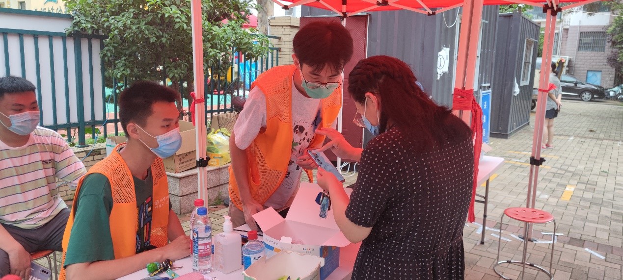 为人民服务,做社会建设者。青年是社会未来的建设者,应该积极走出象牙塔,到社会中去,了解国情,服务社会。团队成员在社区工作人员的指导下,身着统一工作服装,分工合作,助力社区核酸检测开展。有序引导群众间隔一米排队、佩戴好口罩、录入身份信息、解答居民问题。夏日炎炎,高温未能阻挡团队成员的服务热情,认真、负责、高效地组织居民开展核酸检测,赢得了居民和社区工作人员的好评。
