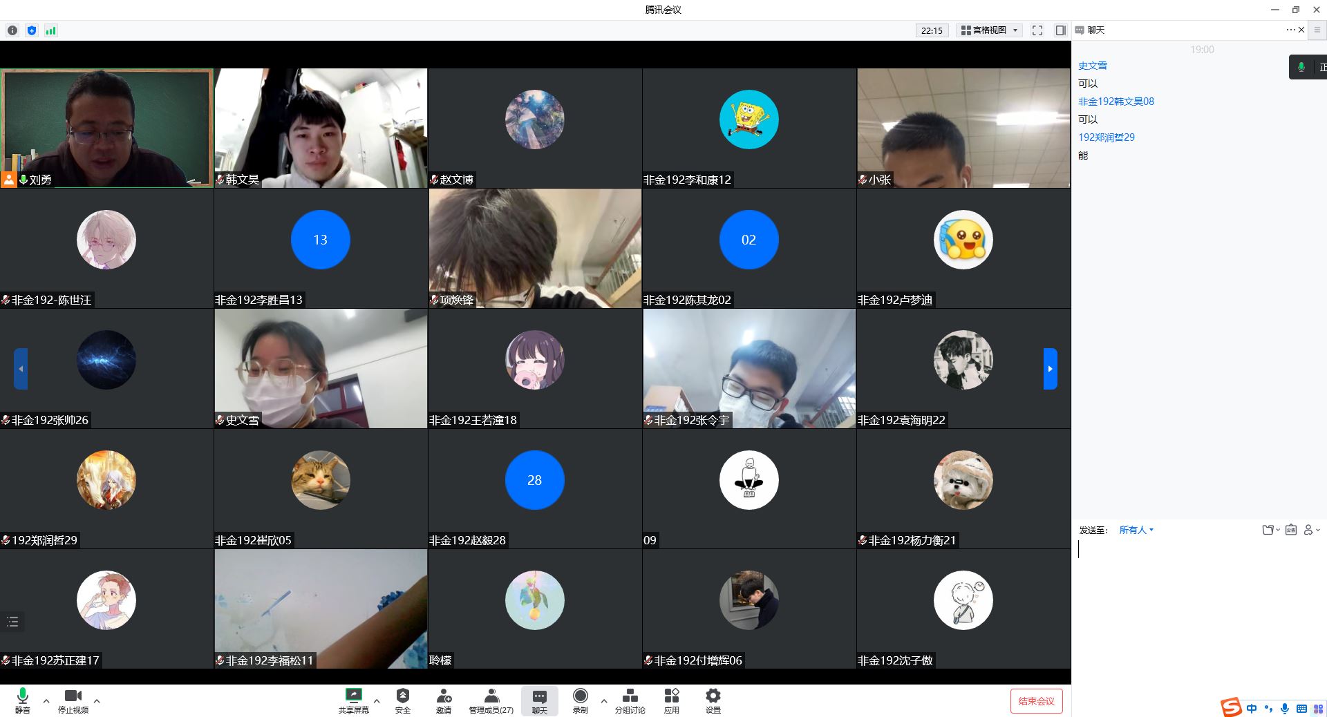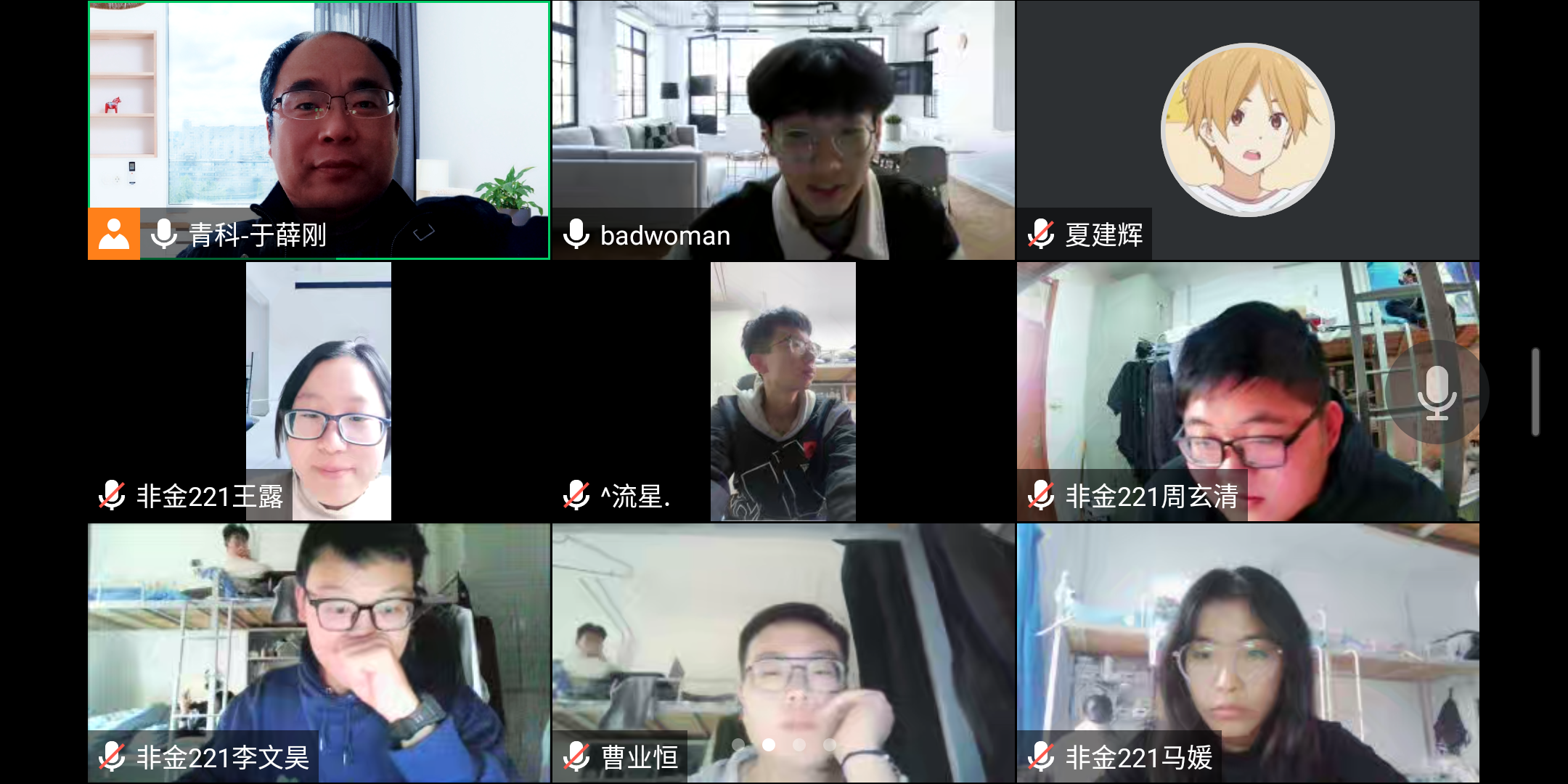 新生年级班主任针对新生适应性问题及疫情防控应对问题开展,中高年级本科生班主任、导师针对学生们关于考研以及就业的相关问题展开,研究生导师针对研究生的科研实验进度等给大家做了详细的指导说明,还有的老师利用线上平台开启了一场别开生面的“实验组会”。