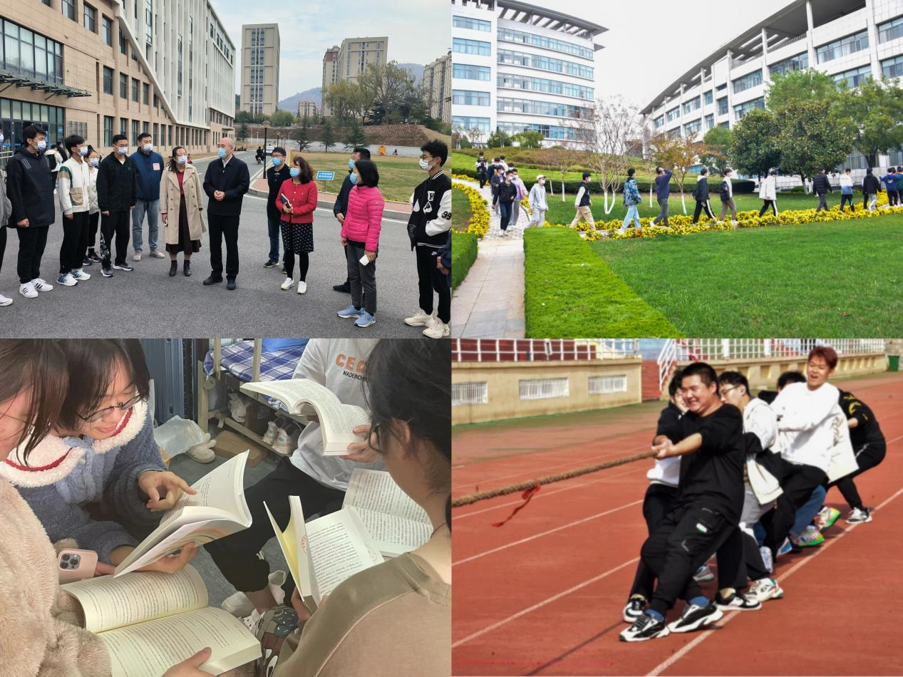 把贯彻落实党的二十大精神与当前重点工作结合起来,引领青年共成长。持续性开展第二十一届“秋之实”艺术体育文化节系列活动,开展“强身健体魄,奋进新征程”主题拔河比赛、“抗击疫情健步走,踔厉奋发勇担当”青年健步行、“书香漂流、好书共享”线上读书分享会等活动,让党的二十大精神在学生中落地生根、开花结果,引领青年共成长。