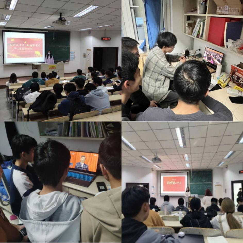 学院党政领导、团委老师、学院学生会、研究生会骨干及学生党员于学院楼406会议室、410会议室集中收看实况直播,认真学习、了解、把握党的二十大精神。各团支部通过线上线下各种形式组织集体观看党的二十大现场直播,以“奋进担当”为重点召开专题学习会,感受团结、奋进的时代脉动。