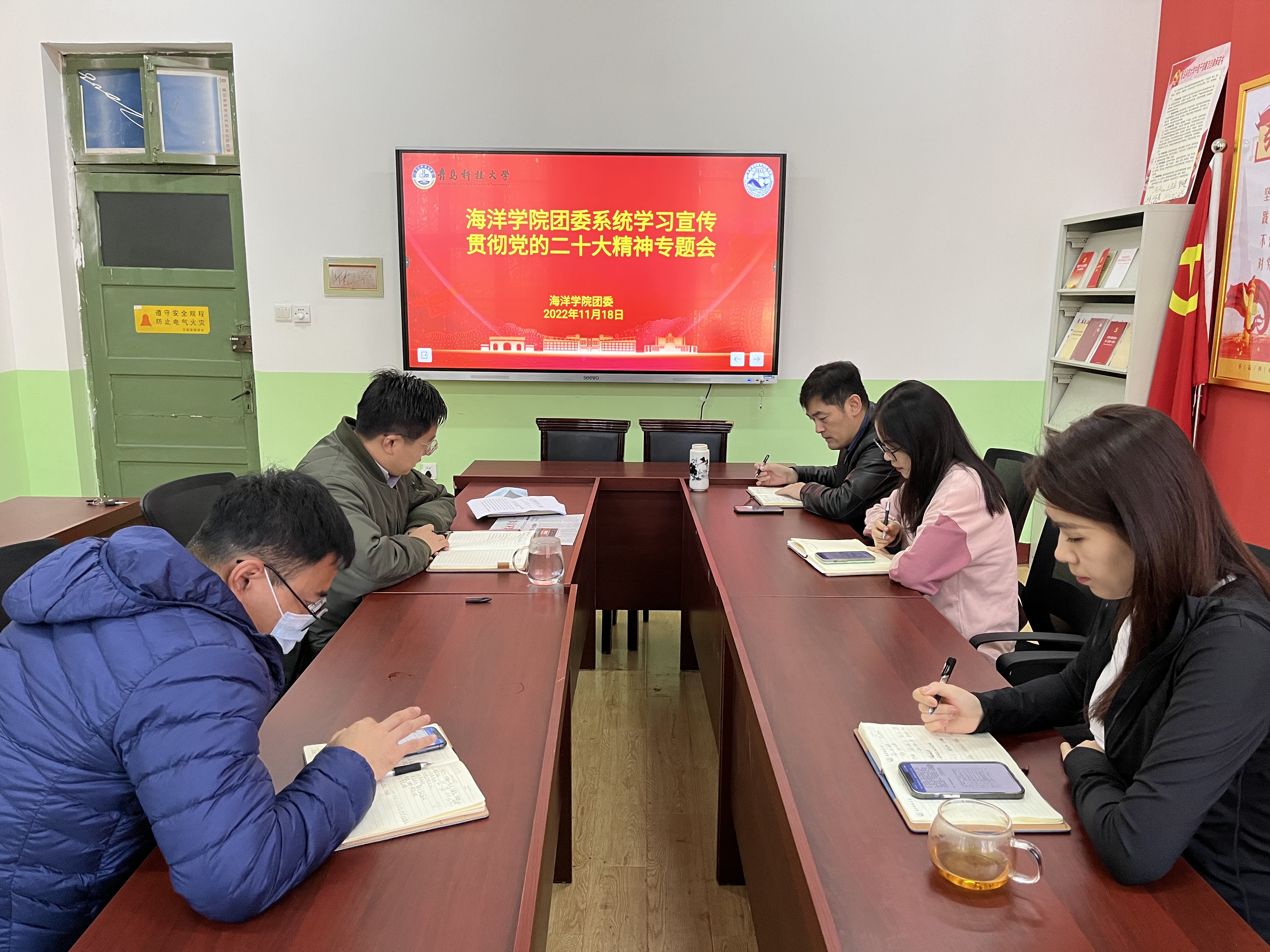 海洋学院团委将继续深入学习宣传贯彻党的二十大精神,把智慧和力量凝聚到完成党的二十大确定的各项任务上来,更好引领广大青年团结一致跟党走,奋进新征程、夺取新胜利。