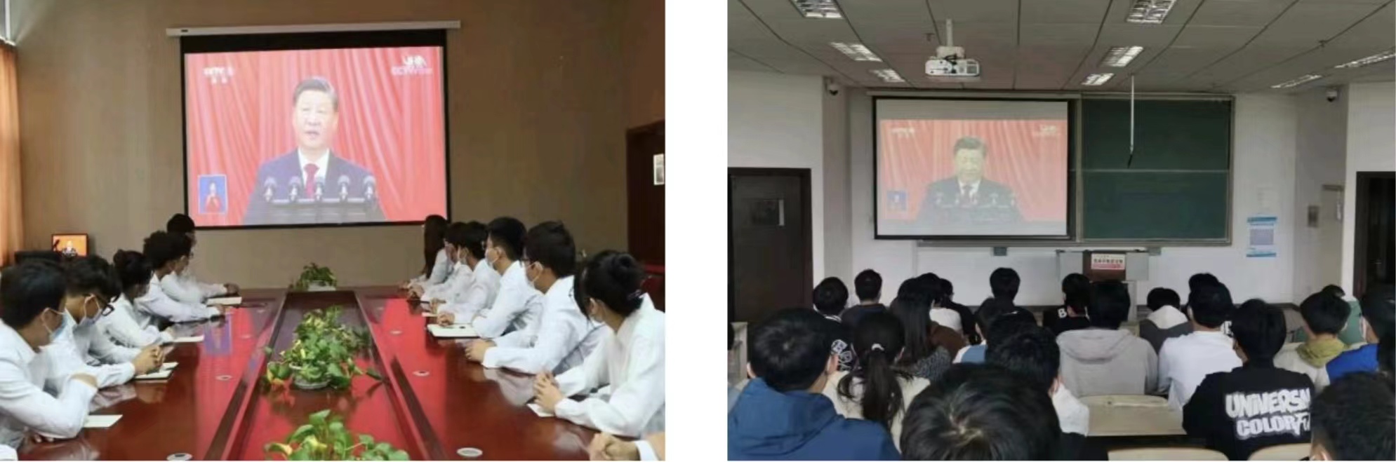 10月16日上午10点,766全讯白菜网机电工程学院团委通过集中收看和分散自主收看相结合的形式收听收看二十大开幕会盛况,团支部书记、各学生组织、团员代表、师生代表在学院530会议室、529会议室、518会议室等集中观看大会直播,认真聆听习近平总书记的报告。学院师生纷纷表示,要积极响应党的号召,大力弘扬伟大建党精神,撸起袖子加油干,坚持学思用贯通、知信行统一,把党的二十大精神落实到学校建设发展中去。