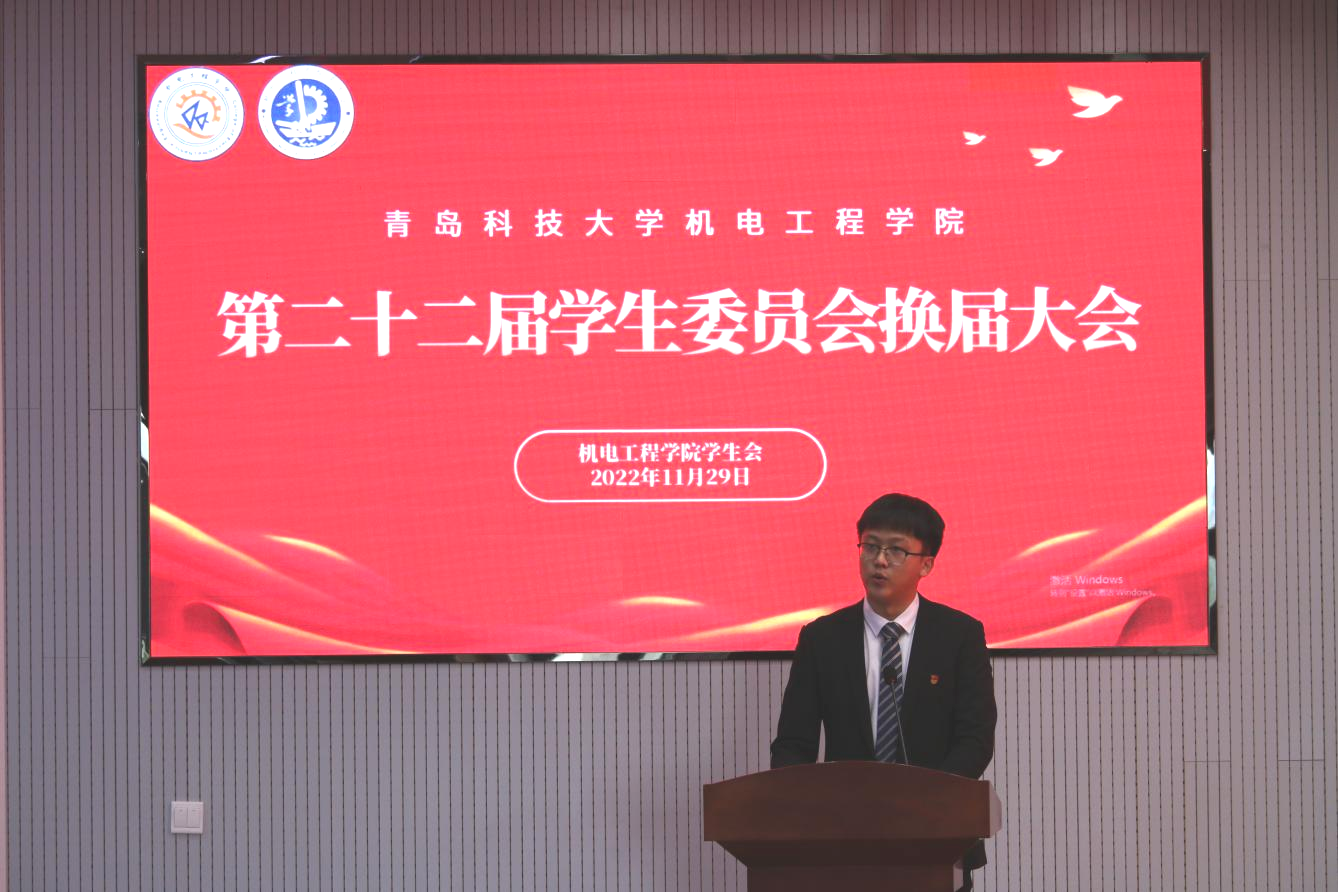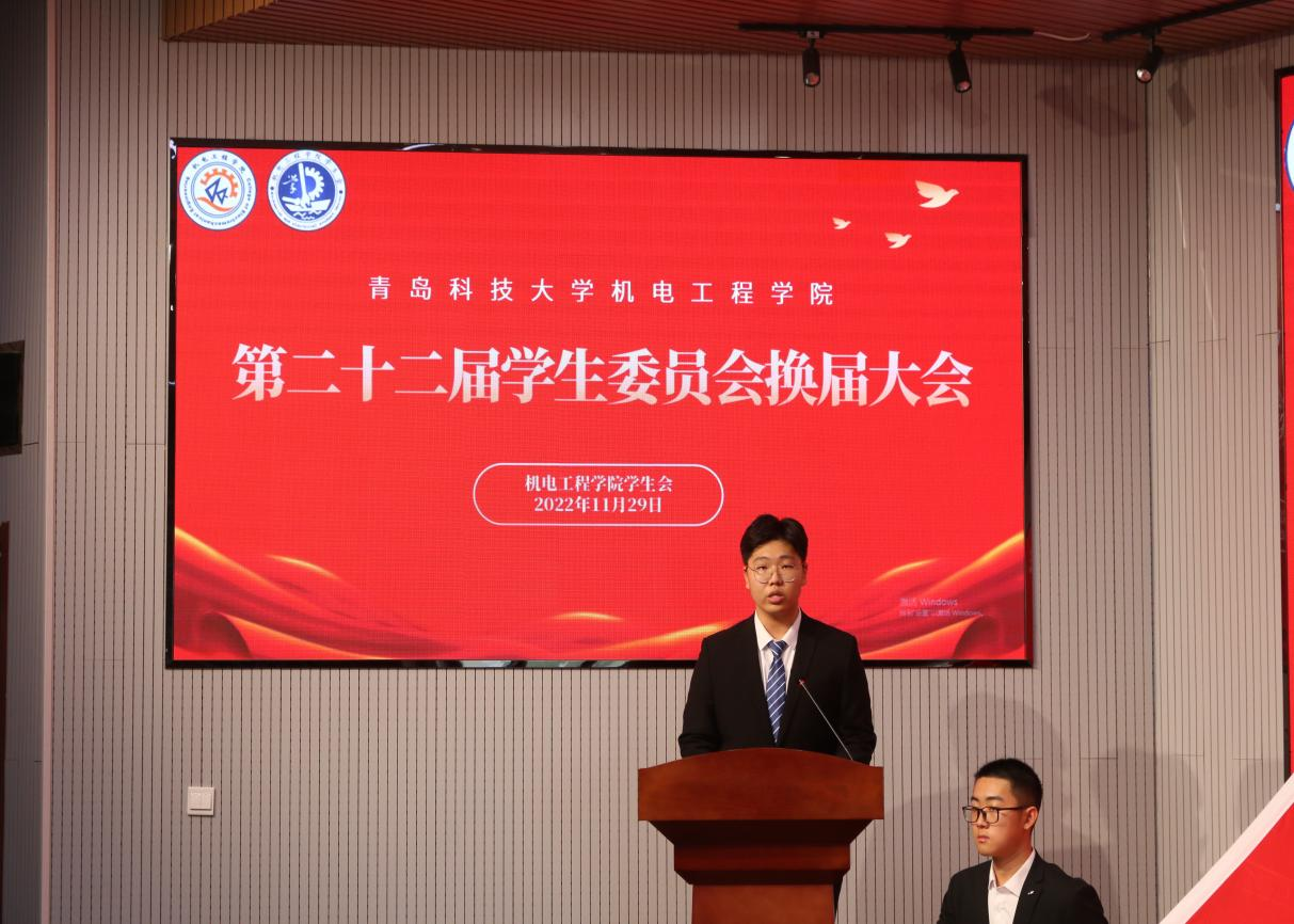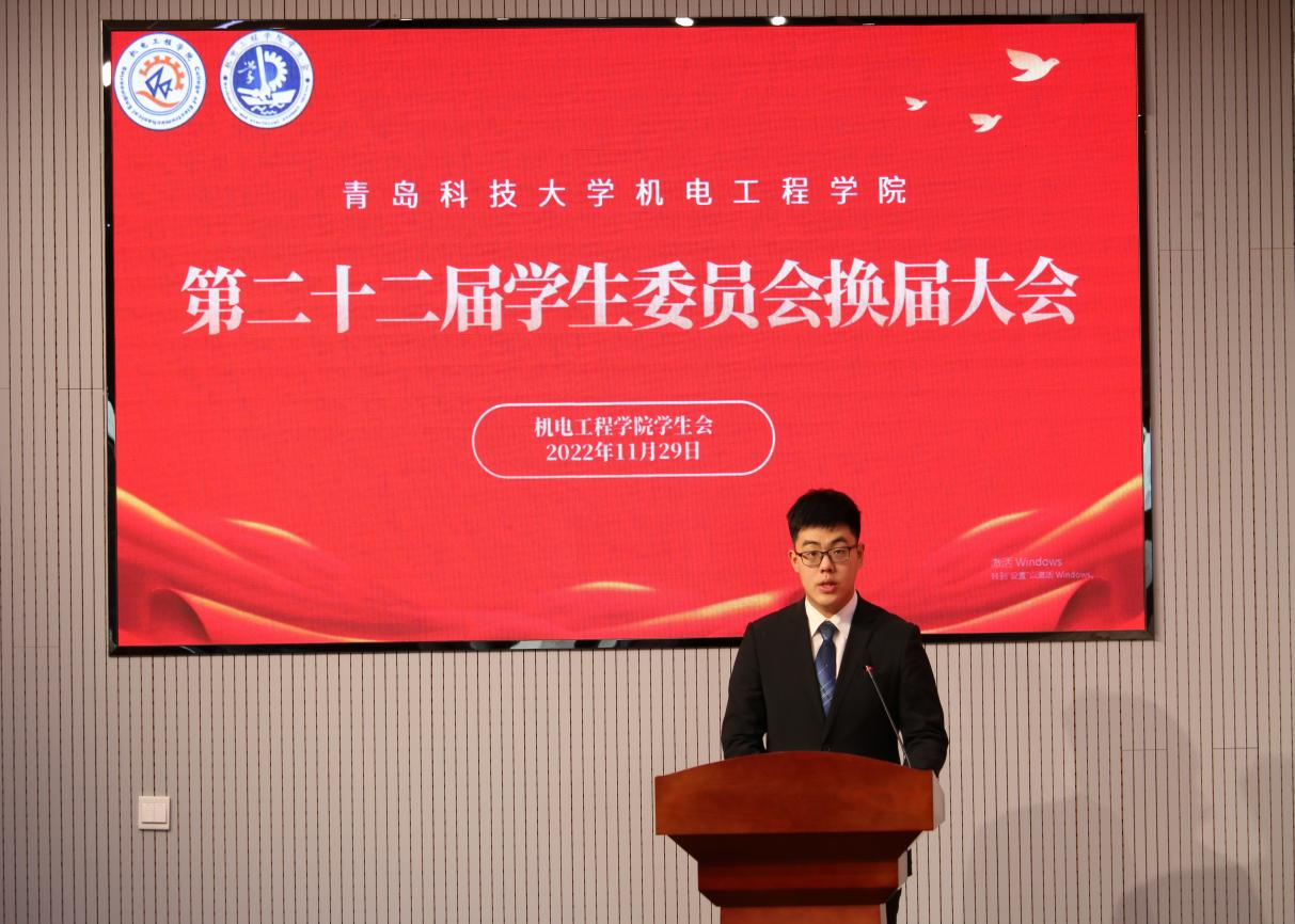会上,机电工程学院第二十一届学生委员会执行主席张致远进行了2021—2022学年学生委员会工作总结。