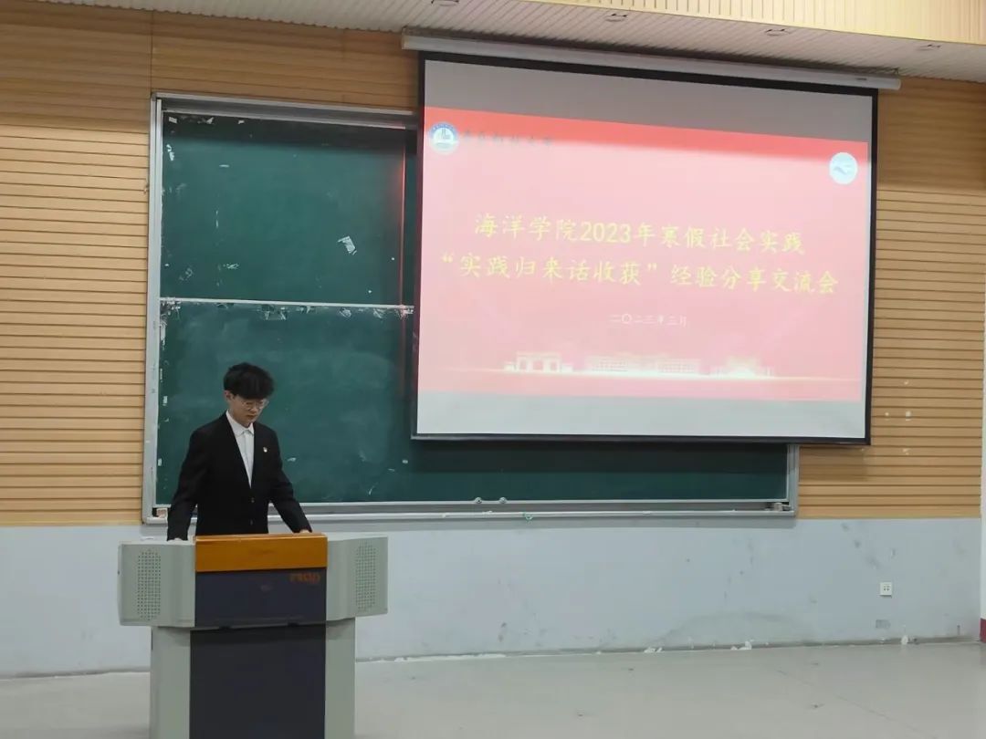 为全面贯彻落实党的二十大精神,系统梳理社会实践成果,交流分享经验收获,引导和帮助广大青年学生上好与现实相结合的“大思政课”,学院开展实践归来话收获座谈分享会。座谈会上各名同学积极分享自己在寒假期间开展社会实践经验,以“云支教”,“青鸟计划”,社区服务等为载体,深入实践活动,丰富精神内涵。海洋学子积极投身社会实践,在社会实践的“大熔炉”中受教育、长才干、作贡献,做有理想、敢担当、能吃苦、肯奋斗的新时代好青年。