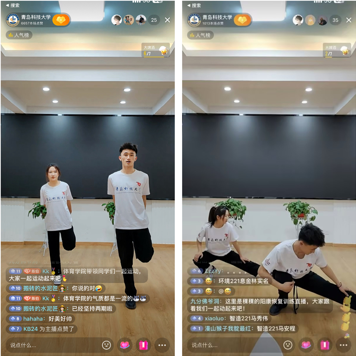 本次线上活动是党委宣传部、校团委、学生处和体育学院在疫情防控新形势下探索体育育人工作、推动学校体育综合改革走实走深的新举措,直播活动自3月11日开播以来,得到了师生积极响应,积极参与到直播中进行体育锻炼、互动交流。据悉,直播活动将在每周三、周六晚8时持续进行,在此基础上还将发起“与青科一起动起来”运动健身微视频大赛、“达人带你练起来”器械健身直播活动等系列线上活动赛事,通过多种方式营造全员积极参与体育锻炼的良好氛围,树立“拥抱体育、出彩人生”健康理念,推动“爱体育·兴科大”育人品牌建设。
