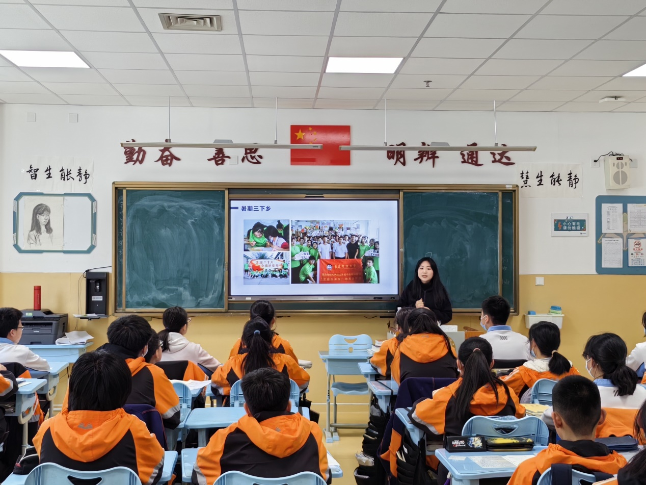 艺术学院学生会、研究生会代表赴青岛第四实验初级中学开展对话交流会。学生会副主席王慧做了一场“我的学习生涯”的报告,她结合自身在中学、大学的学习、工作和生活经历, 给中学生们分享了自己的学习经验、技巧、心得,也介绍了丰富多彩的大学学习、科研、文体和娱乐生活。她建议同学们在奋斗的年龄多向老师同学请教,多与父母沟通,树立远大目标,努力自主学习,积极向上,不负年华。
