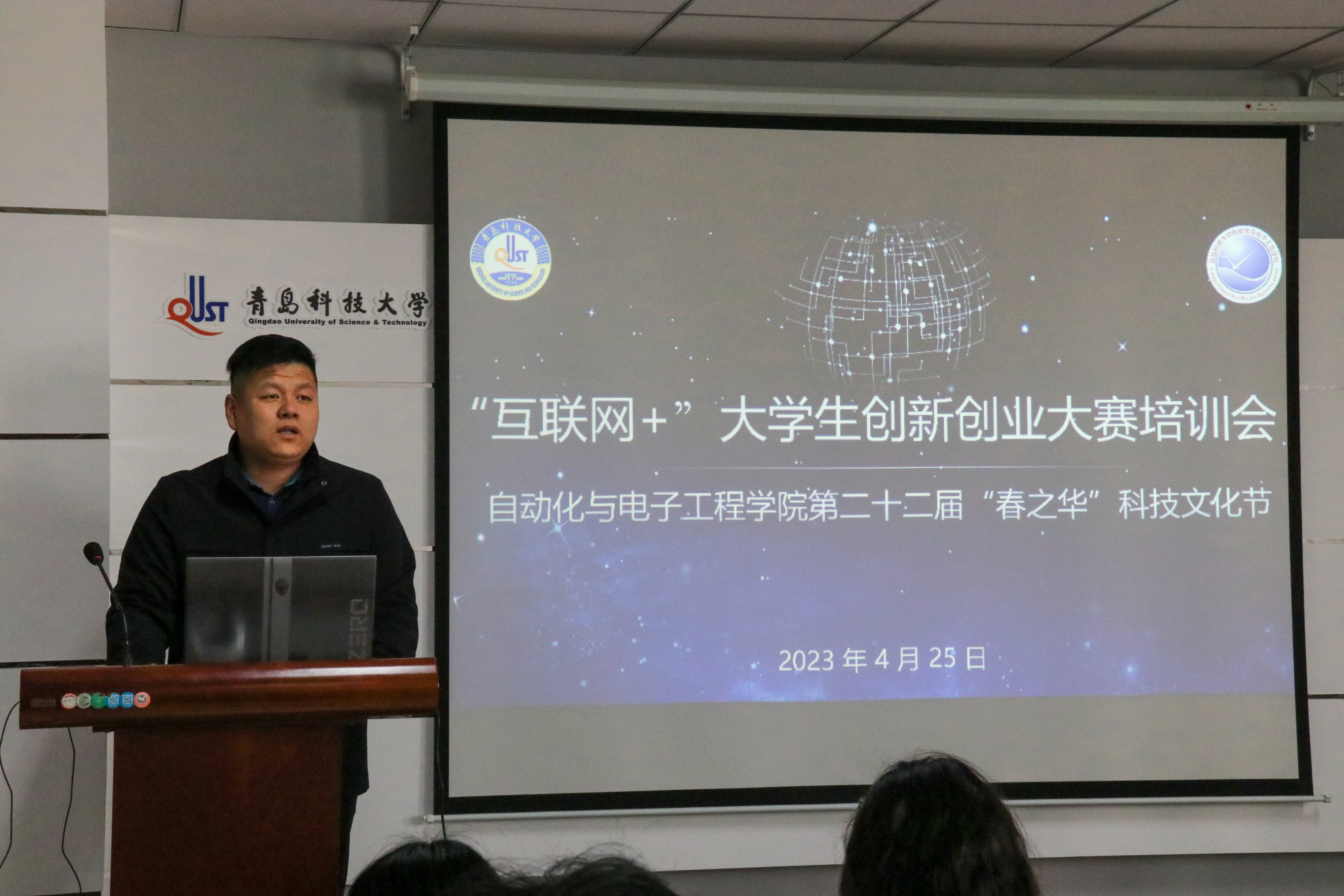 为进一步做好大学生创新创业教育工作,增强青年学子创新意识和能力,4月25日下午,自动化学院团委在学院楼410会议室开展第二十二届“春之华”科技文化节系列活动之“互联网+”大学生创新创业大赛培训会。本次培训会邀请到创新创业学院刘夕升老师担任主讲人,学院团委老师、专业课教师及各年级学生代表参加。
