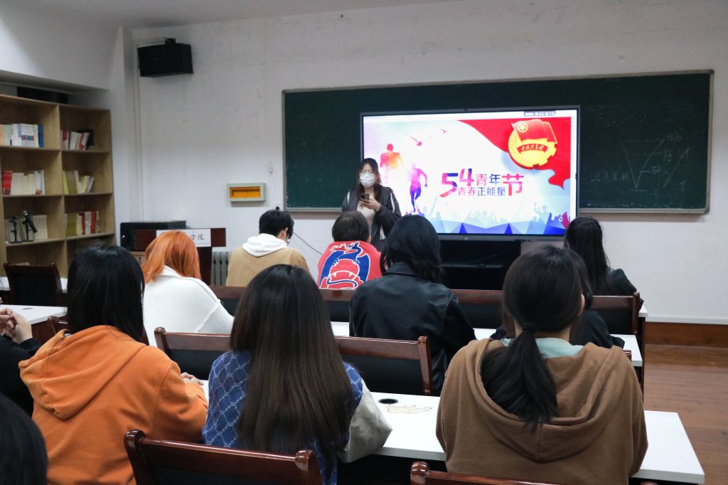 讲五四青年故事,做向上奋进青年。5月1日晚,团员青年们共同追溯百年征程中的青年英雄故事,分享了许多可歌可泣的青年故事和人物。有为改造中国耗尽毕生精力的孙中山先生、倡议易学堂以领风气的陈寅恪先生、坚守山东权益的青年外交家顾维钧先生、一生献予革命的瞿秋白先生等。大家通过一个个故事片段,聆听艰苦岁月中的精神脉动,从而更加坚定理想信念,激励自身不断前行。