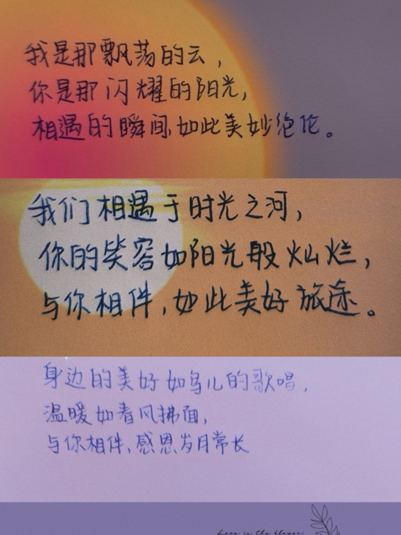 在“致可爱的我和你”三行诗活动中,同学们自行原创三行小诗,在诗歌中遇见另一个自己,用诗歌描绘身边的美好并进行自我连接和互助支持,引发了同学们对自我精神面貌的思考,促进了同学们意识形态导向的正确发展,帮助同学们更好地认识自己。
