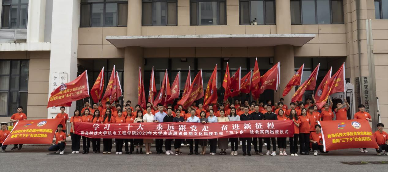 为深入学习宣传贯彻党的二十大精神,贯彻落实习近平新时代中国特色社会主义思想和习近平总书记关于青年工作的重要论述,进一步推动社会实践与时俱进、开拓创新、再创佳绩,引领广大青年脚踏实地、志存高远,在社会课堂中“受教育、长才干、做贡献”,在校院两级党委领导下、校团委指导下,7月11日,机电工程学院2023年暑期大学生志愿者科技、文化、卫生三下乡社会实践出征仪式在机电楼530隆重举行,学院党委副书记兼副院长肖强、团委书记兼学工办主任王娟娟、实践团队指导教师代表和学生代表参与仪式。