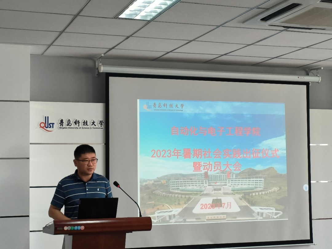 为深入学习贯彻党的二十大精神,切实发挥好共青团作为广大青年社会实践中的引领作用,引导和帮助广大青年学生在与现实相结合的“大思政课”中“受教育、长才干、作贡献”,引领学生立志做有理想、敢担当、能吃苦、肯奋斗的新时代好青年,自动化学院于2023年7月10日下午在学院楼410会议室举行2023年暑期“三下乡”社会实践活动出征仪式。学院党委副书记兼副院长马寒,团委书记兼学工办主任郭蒙蒙,团委老师孙晓旭、吴擎、安柏雅、张郁浩、赵赪赪、徐文丽、马仁轩以及“三下乡”团队代表参加仪式,仪式由徐文丽主持。