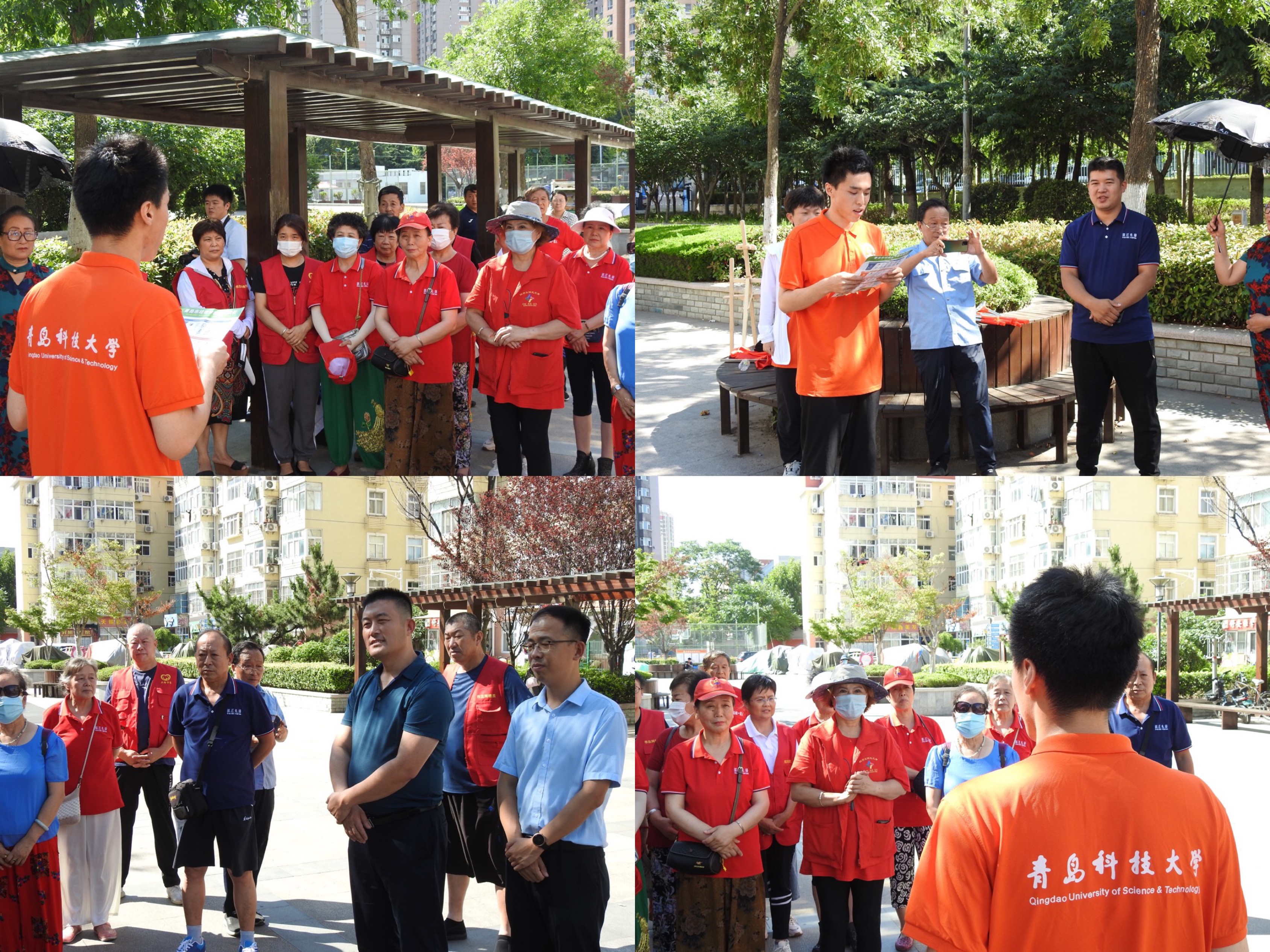 座谈会结束后,陈兵一行赴市北区兴隆路街道滨江路社区现场指导社会实践团成员开展环境科普及志愿服务工作。实践团成员分别进行了绿色环保、垃圾分类科普的现场讲解,并与社区志愿者们一起问卷收集、垃圾清理等社会实践活动。
