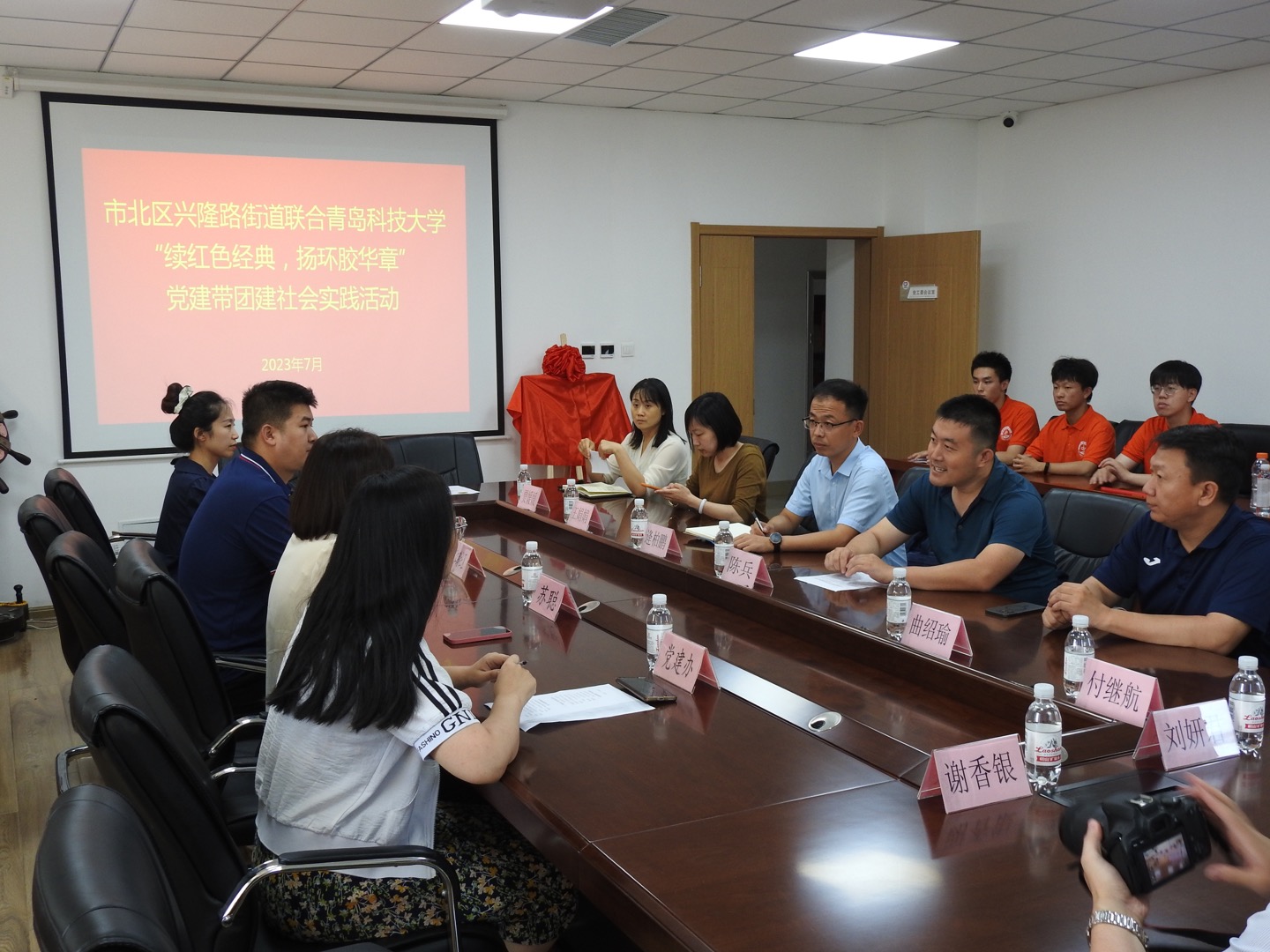 7月17日,校团委副书记陈兵等一行8人赴青岛市市北区兴隆路街道调研走访,就环境学院暑期社会实践团队——赴青岛市“续红色经典,扬环胶华章”美丽中国-红色基因传承队开展社会实践情况进行现场指导。兴隆路街道党工委副书记苏聪、党建办主任张利娟,滨江路社区党委书记周伟等出席座谈会,会议由兴隆路街道党建办主任张利娟主持。