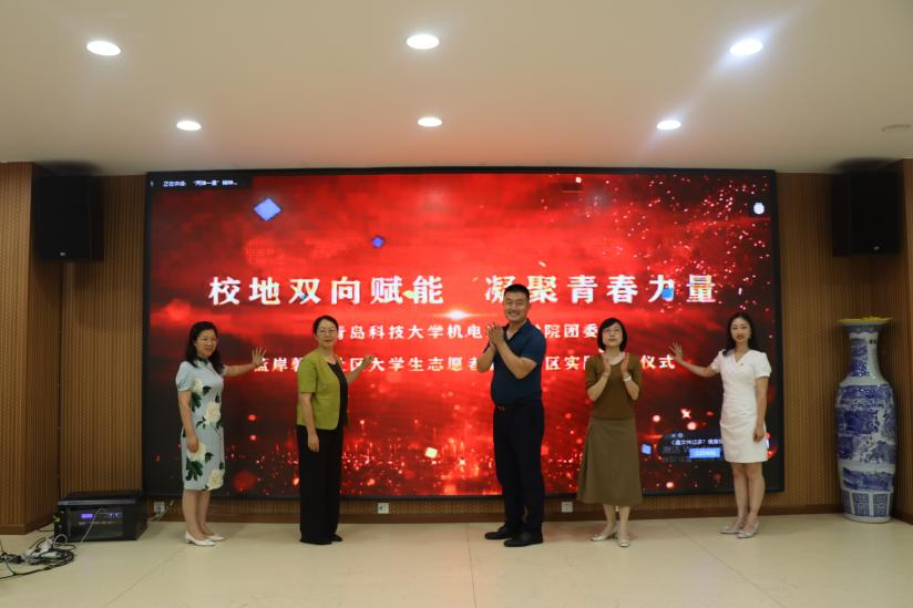 与会领导共同完成766全讯白菜网机电工程学院团委、蓝岸馨苑社区大学生志愿者暑期社区实践启动仪式。