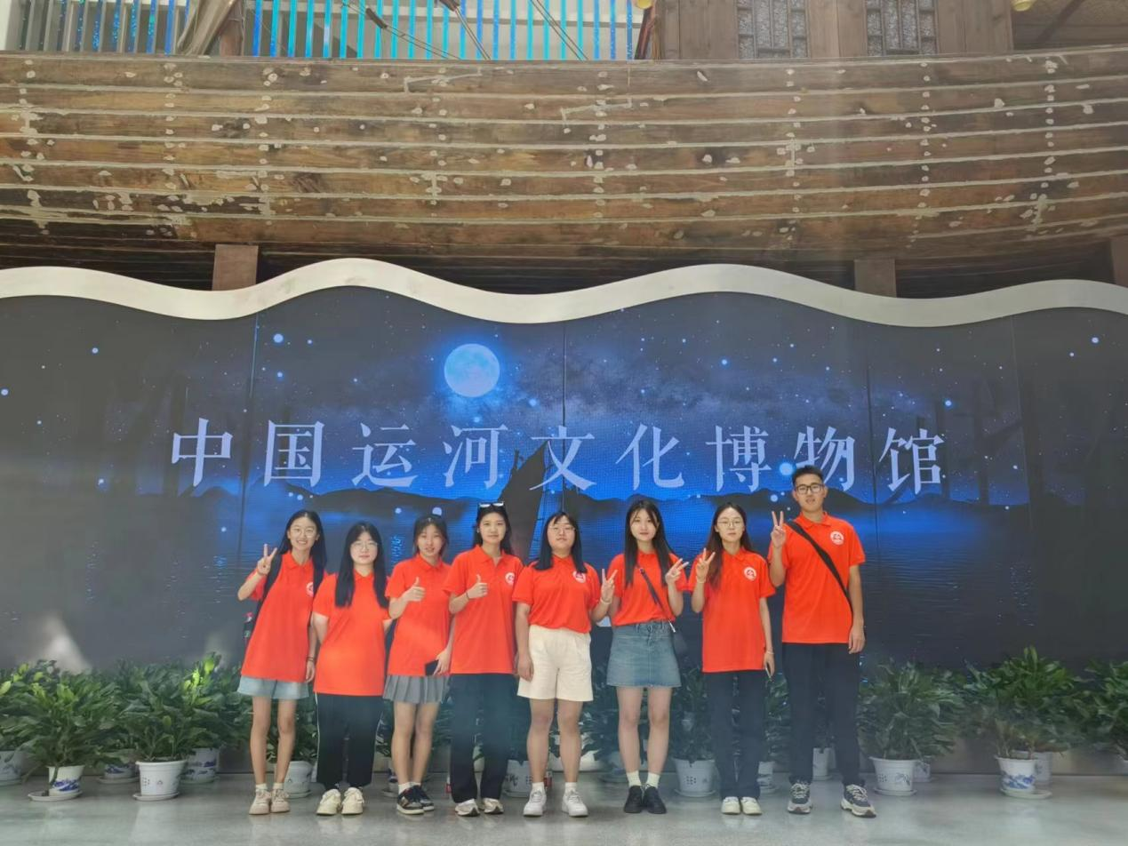 感悟辉煌成就,汲取奋进力量。在参观完红色展馆之后,实践队一行来到了中国运河文化博物馆。该博物馆是聊城市最大的集文物收藏、保护、研究、陈列、宣传教育于一体的大型综合类博物馆,也是国内第一座以运河文化为主题的专题博物馆。实践队员共同观看了由“历史变迁”“水工科技”“制度管理”“城镇经济”“运河风情”“现当代运河”6部分组成的常设展陈“大运风华——运河文化陈列”。不同于传统玻璃+文物的展出方式,该展览运用丰富的交互式展示手段将馆藏精品文物、多媒体投影、微缩景观和大型艺术场景进行了有效融合,充分展现了文化+科技之美。各位队员纷纷感慨于运河文化的灿烂和现代科技的强大,立志要学好自己的专业,为祖国的繁荣强大贡献自己的能量。