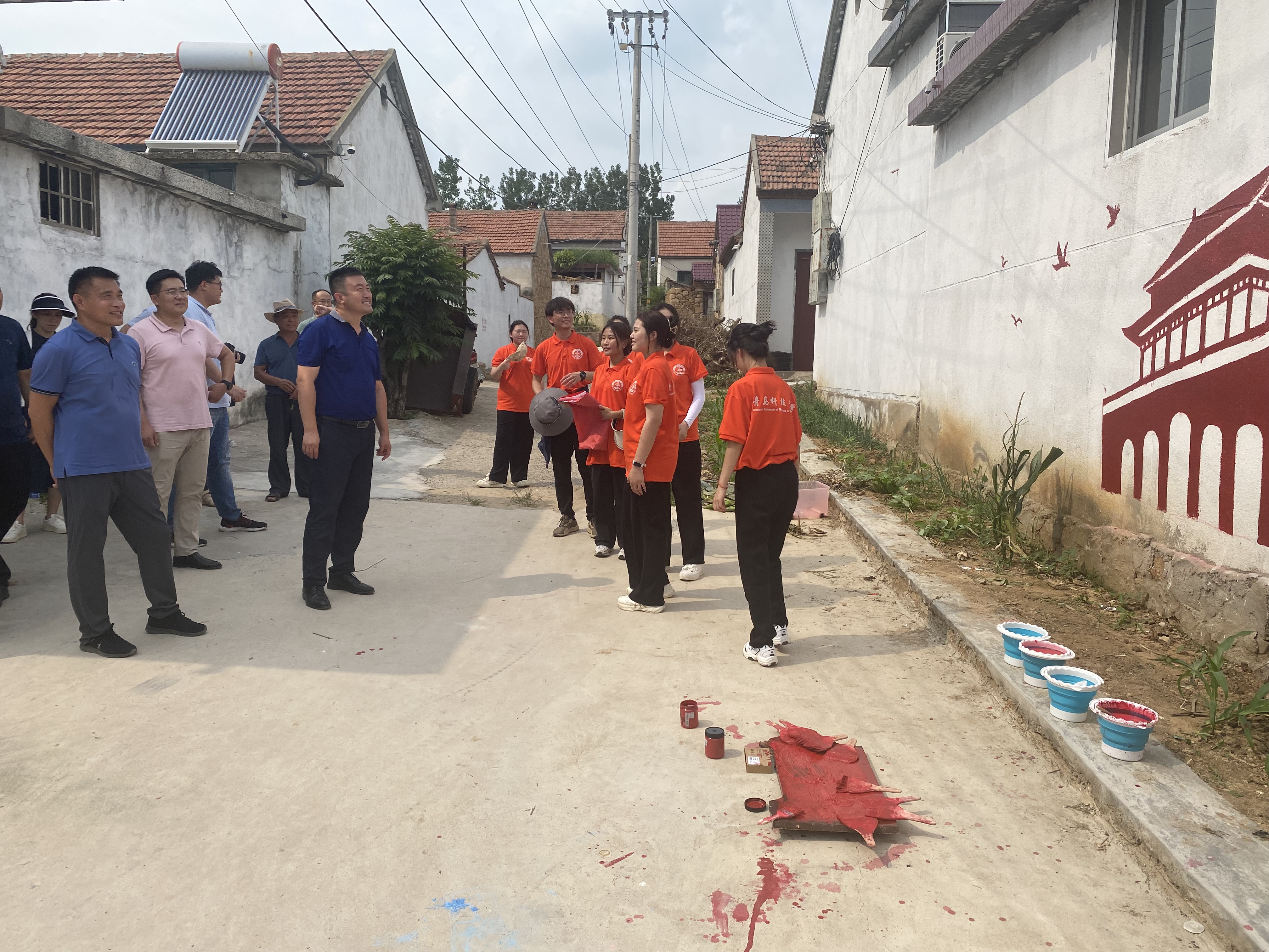 开展乡村墙绘活动。7月19日,学校团委副书记陈兵一行看望正在开展墙绘活动的实践队员。本次实践得到省派蒙阴县联城镇第一书记刘宝成、闫传新的大力支持。8名实践队员骄阳似火斗酷暑、挥汗如雨战高温。他们先是在纸上提前构思设计,然后用粉笔在墙上进行草图绘制,最后在调色上色。一勾一点、一笔一画,以墙为画卷,为村庄增添了一抹靓丽的色彩。实践队员用自己的双手和辛勤的汗水投身火热社会实践,让青春的足迹活跃在中国大地上,彰显了新时代大学生的青春风采。