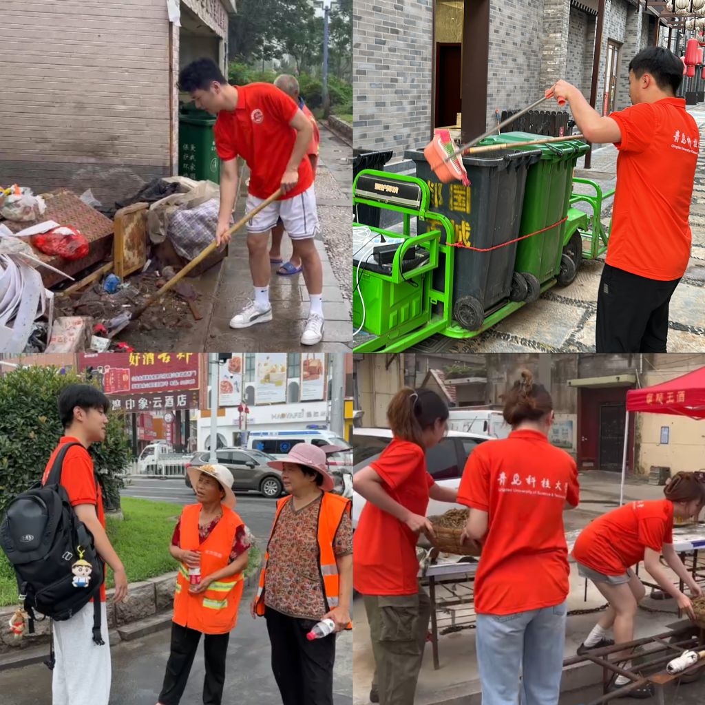 开展城区志愿服务。实践队员走进郯城县城区沿道路两侧绿化带帮助环卫工人拾捡草坪中的白色垃圾、枯枝败叶等,志愿者们热情高涨、相互协助,争着捡、比着干,美化了城区环境。部分成员还积极参与城区沿街商铺义助活动,向社会展示了新时代大学生参与社会建设的积极动力和饱满热情。