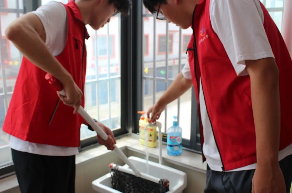 在老人们吃饭回家后,团队成员继续留在食堂,帮助工作人员打扫食堂卫生,每一位团队成员都充满干劲,纷纷得到了食堂工作人员的赞许。