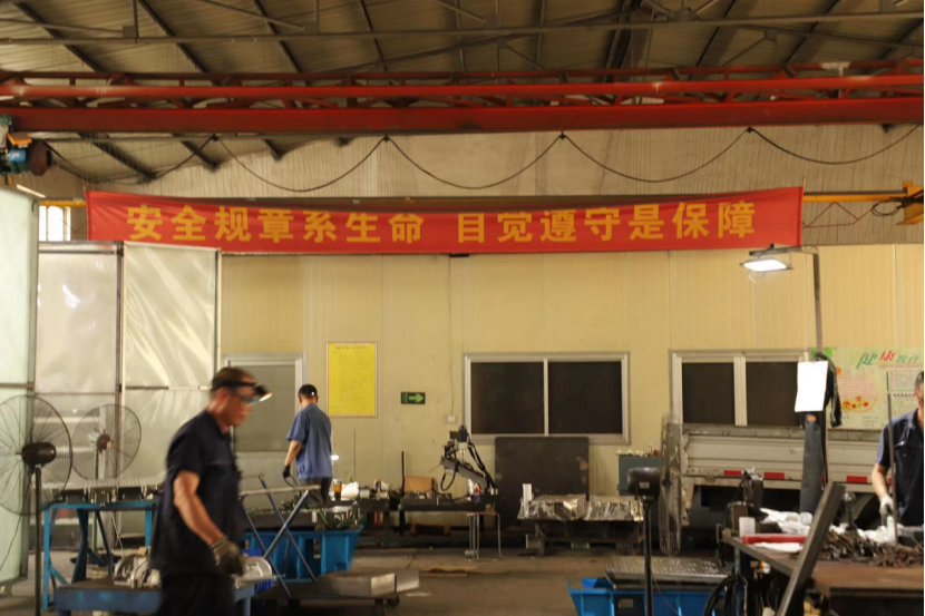 “安全规章系生命,自觉遵守是保障。”在厂房内的西墙上,张贴着红色醒目的标语。“我们厂里很注重员工的生产安全,每项生产都有严格的安全标准,而且每年厂里都会有体检,保证工人们的身体健康。”负责人如是说。
