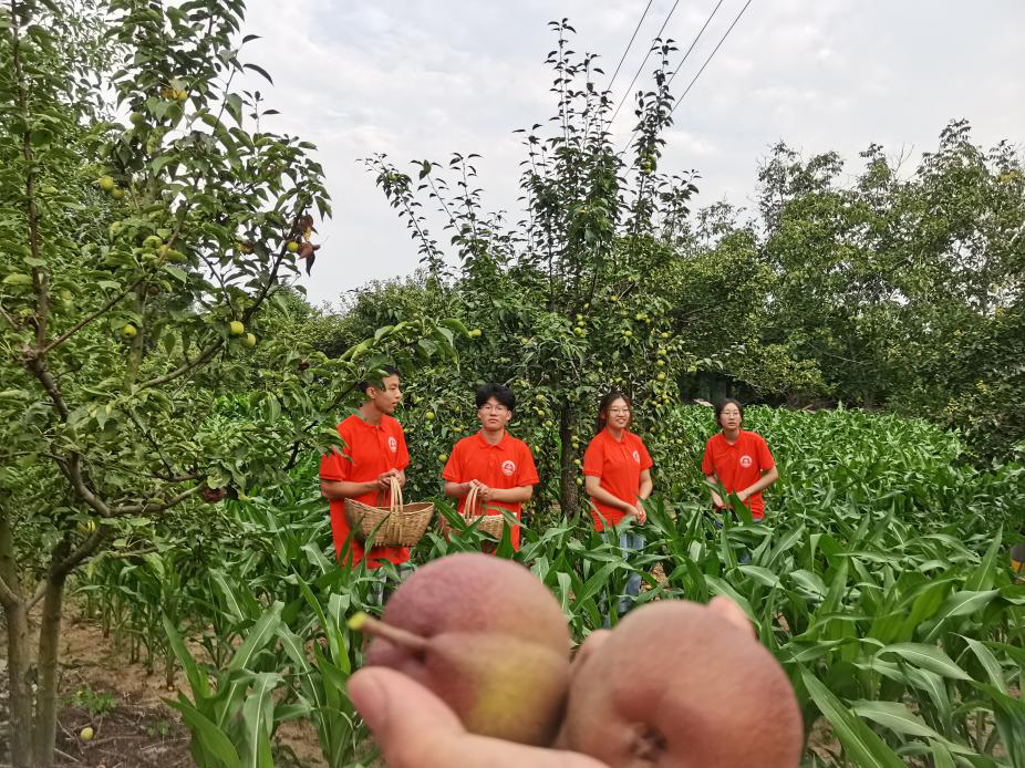 随后,调研团来到了果园帮助村民们采摘水果。在这里,调研团进一步体验到劳动的魅力。村民的智慧和认真汲取教训的态度,最终凝结成果实硕大,芳香四溢,晶莹圆润的水果,这也是村民们脚踏实地,埋头苦干的坚持所在。烈日炎炎让每位成员都汗流浃背,但为青常成,行者长志,调研团“愈战愈勇”,在这炎热的夏天,火辣的阳光,滚烫的景色,青年的热血比夏日的骄阳还要滚烫,调研团与景色一同沸腾。