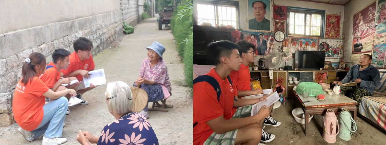 在庄严肃立的纪念碑下,苍松翠柏掩映之间,调研团来到抗战老区——孟良崮,这里是烈士埋骨之处,也是英雄魂归之所,它记录和讲述着孟良崮战役的革命历史故事,也彰显着将士们昂扬不灭的精神。调研团来到这里,走街串巷,访百姓生活,听革命故事,探红色密钥,在抵达古泉村后,了解当地风土人情,感受百姓的淳朴民风,与当地历经战争的长辈深入交流,了解战争背景、历程与艰辛,感慨于昔日战火连绵,又自得于当今盛世太平。
