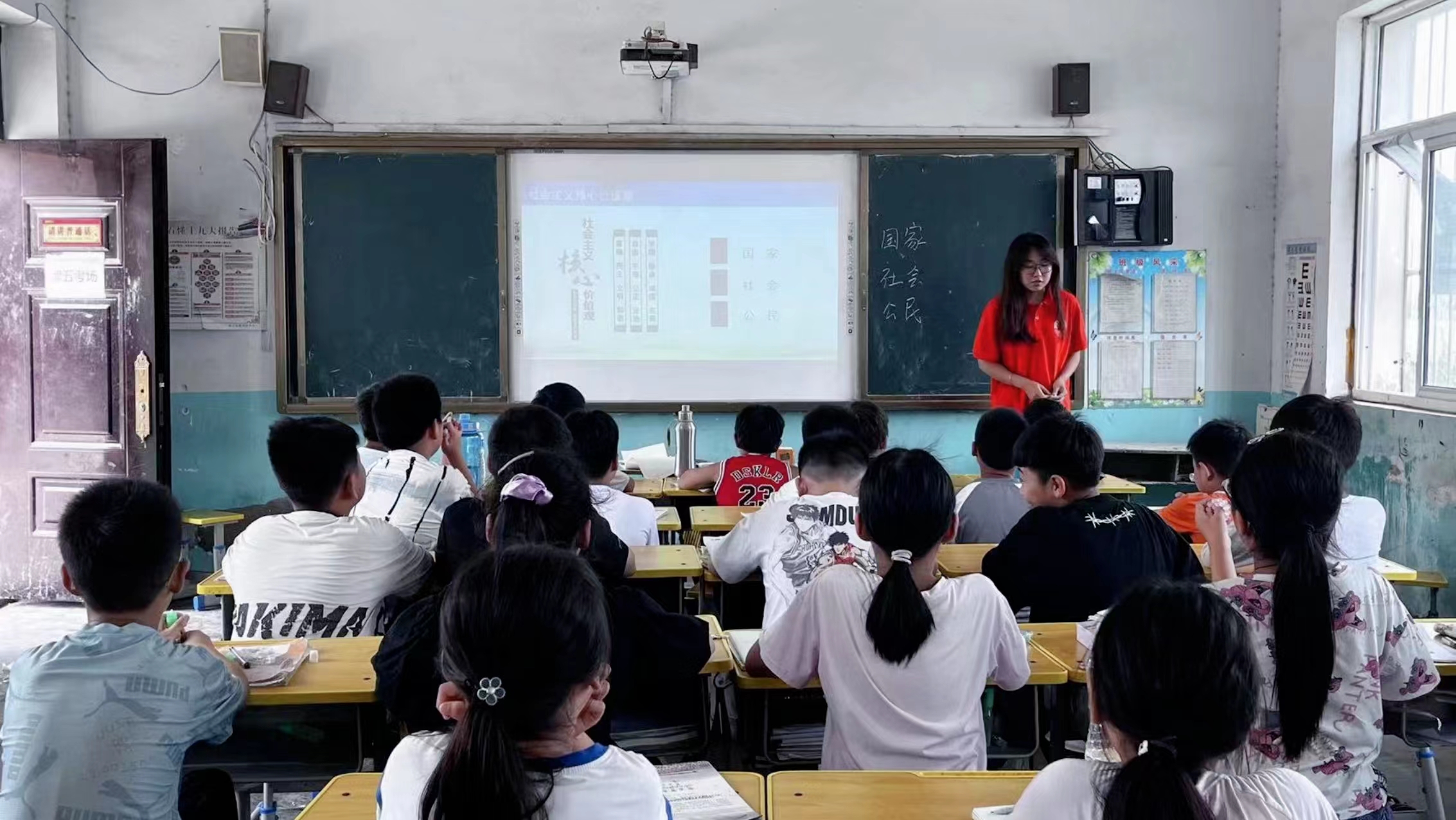 随着社会主义核心价值观深入人心,农村在国家文化教育方面也落实到位,志愿者组织班内同学从国家、社会、公民三个方面深刻理解社会主义价值观以及扎根中华大地的中国优秀社会主义文化,课程介绍每一个观念的具体含义以及相关历史故事,既结合了志愿者生动的讲解,也带动了孩子们积极参与课堂,图文并茂更是让孩子们重新感受到中国特色社会主义文化的魅力,有利于社会主义核心价值观内化于心,外化于行。课程的实践环节,志愿者引导学生们讲述自己对“24字”的理解,并说明自己将要如何践行社会主义核心价值观。在实践中磨砺自己的意志,在生活中塑造自己的品格。
