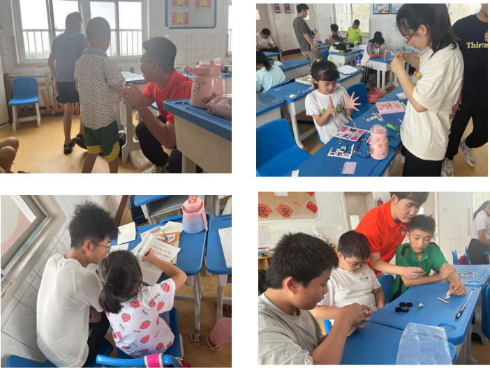 随后调研团成员带着孩子们开展趣味游戏及手工艺品制作专题活动,通过多媒体展播、实例教学、现场示范等方式培养同学们的动手能力和独立思考能力,并借助小组合作让同学们认识到团结合作、互帮互助、集思广益的重要性。在调研团成员与同学们的切身参与下,课堂气氛活跃,活动开展丰富充实,在课间还开设了作品展示环节,并表达了调研团成员对同学们作品的肯定。通过这些活动,同学们不仅增加了对彼此的了解,还领悟到团队合作的宝贵之处,为同学们的假期增添了浓墨重彩的一笔。