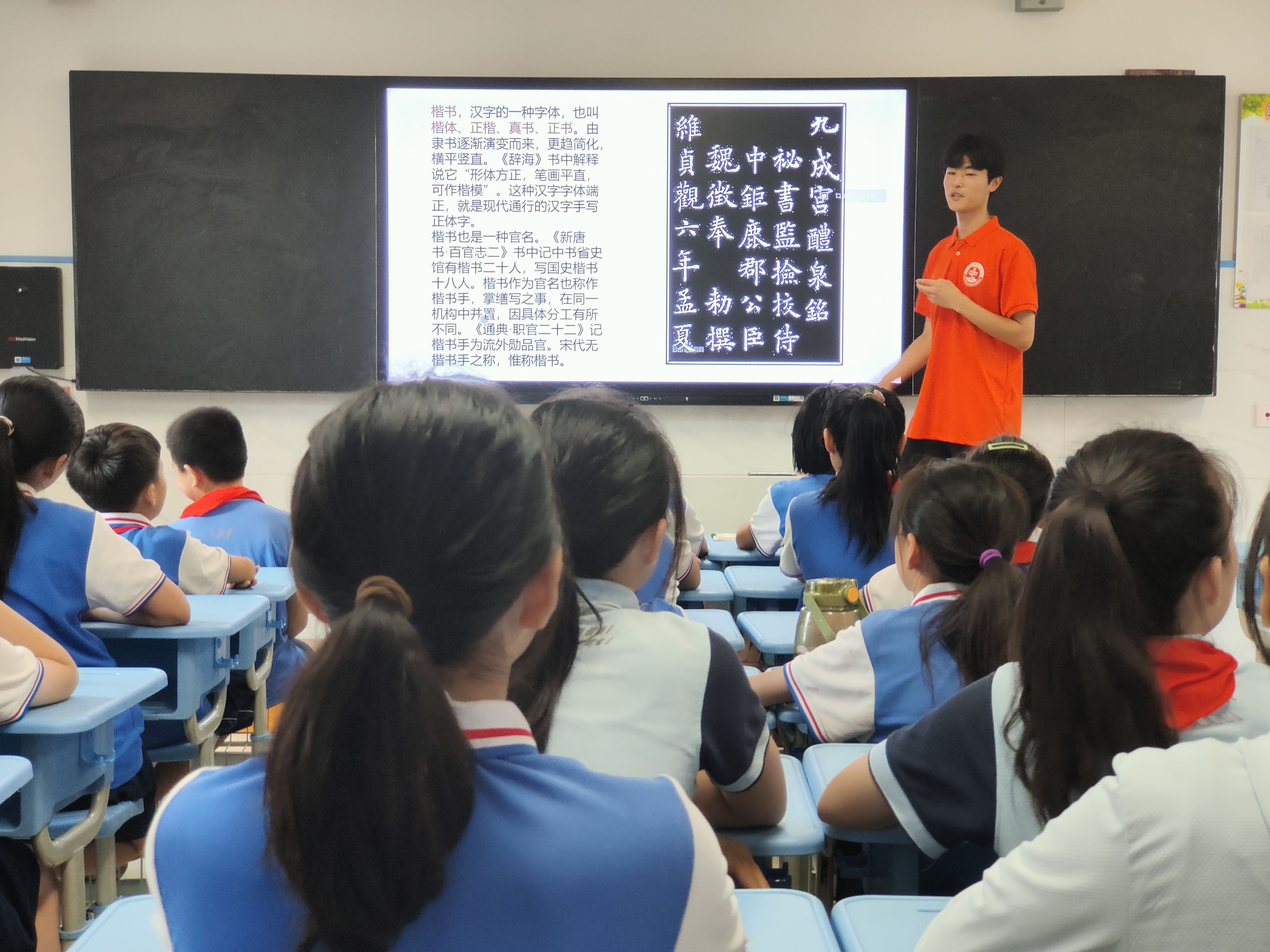 书法是中国古典艺术的一朵奇葩,它是一种独特的艺术形式,而且源远流长。教育关爱团成员李凯通过自己多年的学习,对小朋友们介绍我们中华传统书法。他首先从书法的起源讲起:从甲骨文、金文到篆书,从草书到隶书、楷书、行书。他结合照片分析了不同传统字体的特点。接着,他带领小朋友们练习了简单的字体,去感受楷书的“顿笔”与“回锋”。最后,他强调了练出一手好字的重要性,宣扬了中华优秀的书法文化,让小朋友在练习书法的过程中感受博大精深的中华文化。