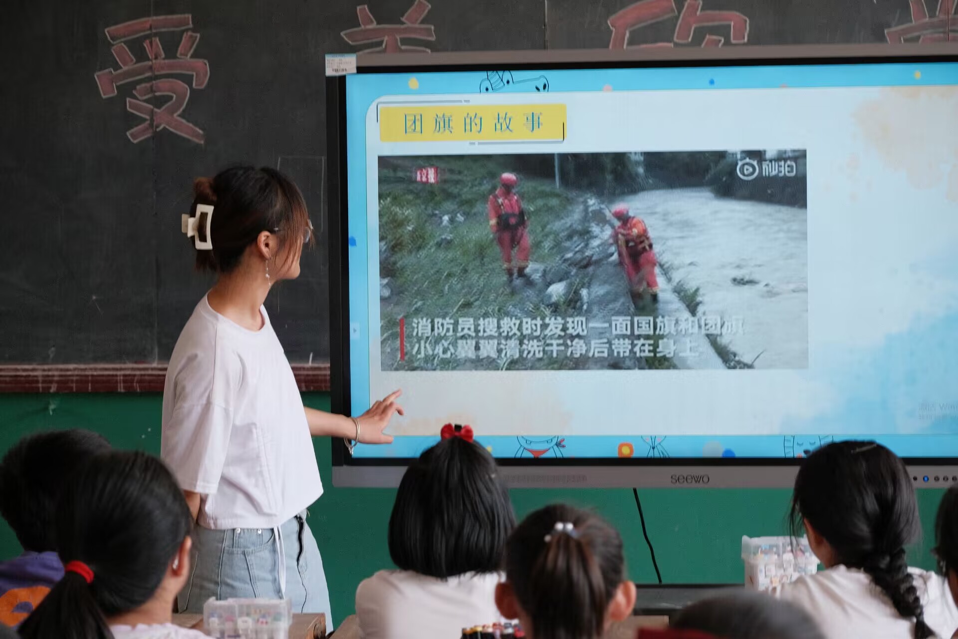 爱国主义不仅体现在意识层面,而且渗透到日常生活的方方面面。为了解决学生仅仅知道理论,而遇到具体现实情境时不知该如何做的问题,团队播放相关爱护祖国旗帜的视频,使学生更加真实的学习如何爱护祖国旗帜,当遇到祖国旗帜受破坏时该如何去做,从而增强学生的行动意识,拒绝做“言语上的巨人,行动上的矮子”。