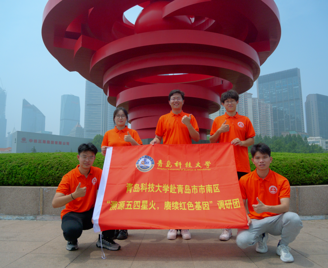 调红色故事与主题教育相结合,用“小切口”彰显“大主题”,探寻大众喜闻乐见的方式,研团成员来到五四广场,重温五四运动,体悟革命先辈的精神气节。“五月的风”雕塑是青岛作为“五四运动”导火索的标志性建筑,简洁的线条和厚重的质感表现了一股腾空而起的劲风,其以盘旋上升的造型,象征着红色之火在革命之风中熊熊燃烧,延绵不绝,给人以奋进向上的力量,仿佛置身于那段历史的洪流之中充分展现了“五四运动”反帝反封建的爱国主义情怀与蓬勃腾升的民族力量。