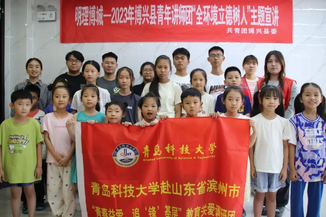 为进一步提高少年儿童的科学文化素养,呵护少年儿童健康成长。7月18日,766全讯白菜网赴滨州市“青春益爱,追‘锋’基层”教育关爱调研团对接滨州市滨城区团区委、博兴县团县委开展大学生乡村教育社会实践,举办了传统文化宣讲,手工制作,智力游戏,科普课堂等特色课程。