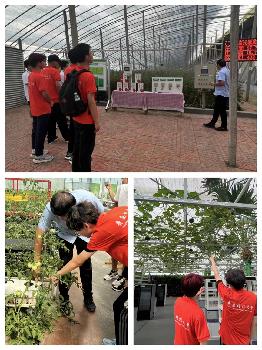 在讲解员的带领下,团队成员近距离参观到了现代农业示范园项目。根据讲解我们了解到该示范园集蔬菜生产示范园区、育苗中心、展示示范区、智能温室等多个功能区于一体,配备了智能温控、空气土壤传感器、物联网、云平台等智能设备,实现了生产全流程智能化监督。在展示示范区建设智能温室大棚,用于试验种植新技术;在育苗区建设日光温室育苗大棚,用于种苗繁育;在蔬菜生产示范园区建设冬暖式大棚,重点发展胡萝卜、西红柿、辣椒、韭菜、草莓等绿色有机水果蔬菜品牌;采用生物菌肥等措施整体改良大棚土壤质量;建设智能蔬菜信息综合管理平台,对蔬菜的生长环境、选种育种、生长过程以及最终到交易的整个过程进行的统一的信息管理和服务。