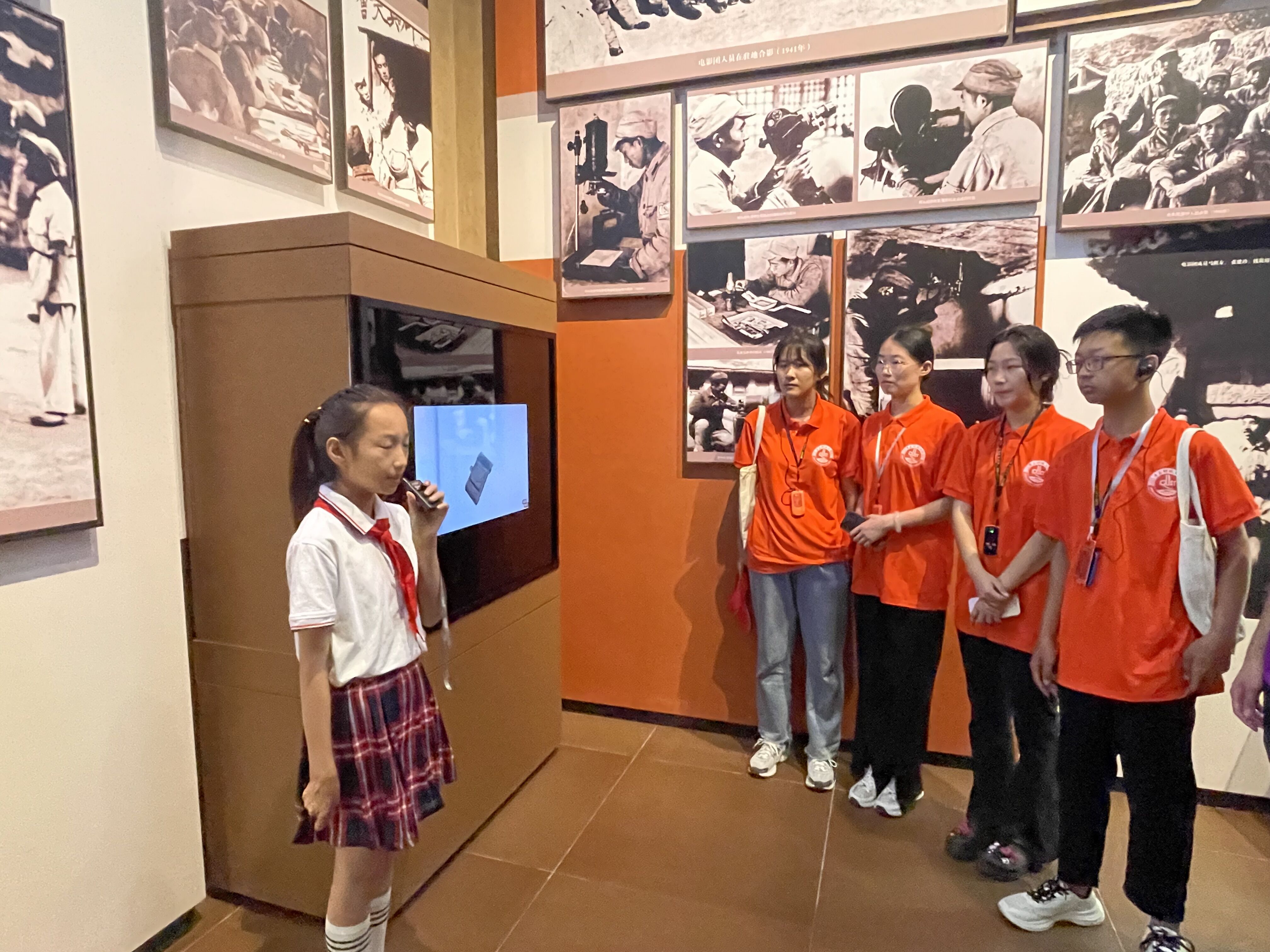 在馆内,队员们通过小小讲解员对于当时发生在延安时期的一些故事的讲解,在短时间内了解到了事情的经过。同时,在聆听的过程中学习他们身上的光荣传统,将他们作为榜样激励自身。队员也化作讲解员,为当地的小朋友讲解作为大学生朋友所知道的我党在历史上的一些突出事件,以助于延安地区的人们更好的了解历史,发扬历史事件所带给我们的宝贵财富。