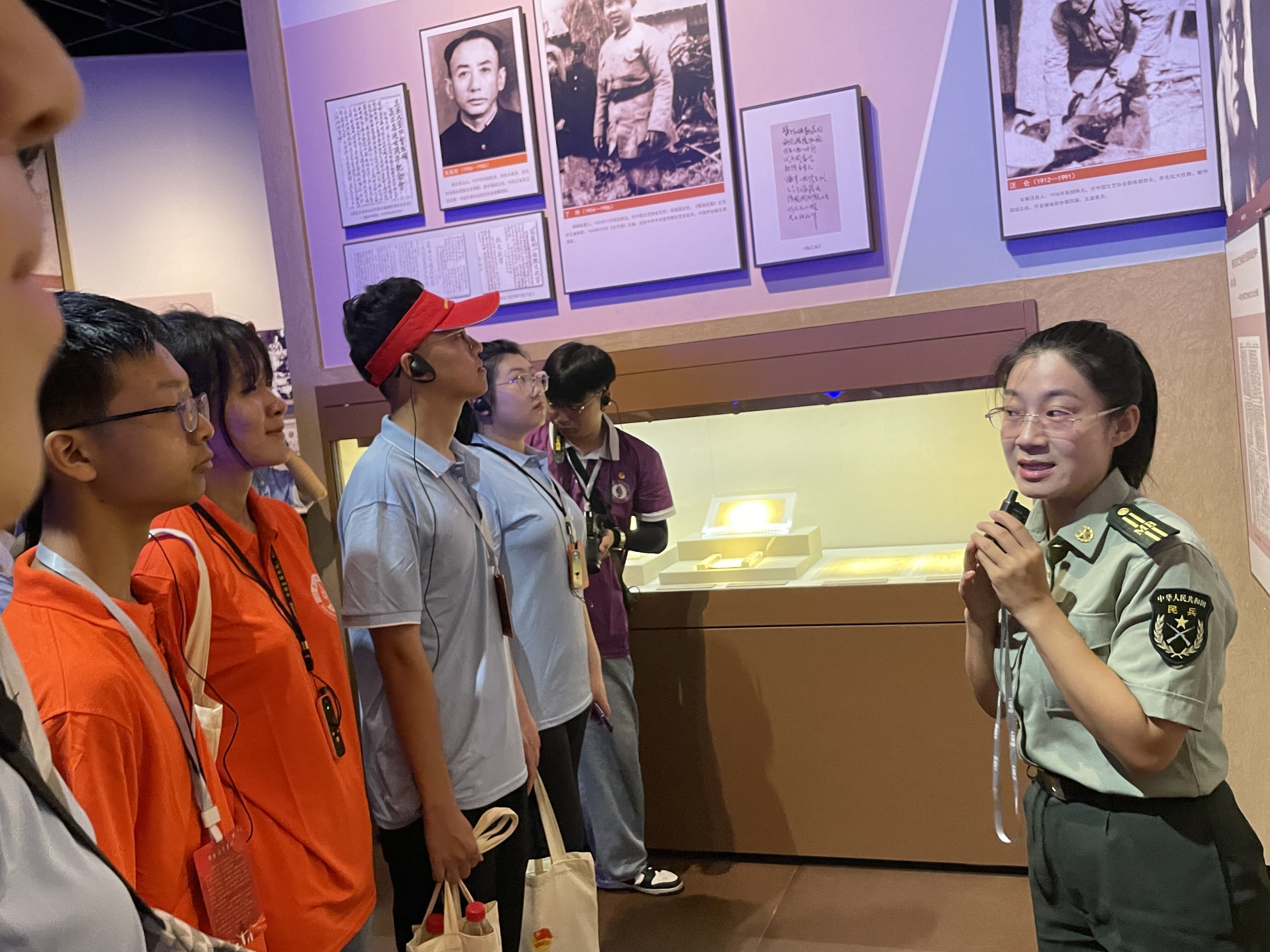 8月12日上午,实践队抵达抗大纪念馆。走进去,一面巨大的抗大校旗映入眼帘。校旗上镌刻着“团结、紧张、严肃、活泼”的八字校训,这八字校训很好地与马列主义的“新鲜活泼”结合了起来,反映出了人民群众的“喜闻乐见”。在纪念馆内部,队员们参观了以实物、图片、雕像、壁画等多种形式的展品。从中队员们了解到了抗大的历史背景,建校理念以及学子们的学习生活。队员们也了解到了从抗大走出的英雄将领,其中不乏罗荣桓等大家耳熟能详的人物。队员们仔细观看每一件展品,感受着历史的厚重和共产党的艰苦奋斗。