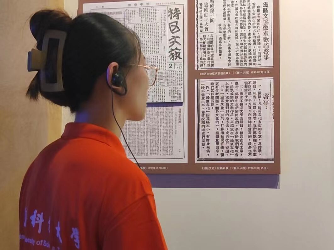 8月13日上午,实践团队前往鲁艺-延安文艺纪念馆参观学习。团队在这里驻足、聆听、感受,接受红色革命教育,接受灵魂的熏陶和精神的洗礼。漫步在鲁艺-延安文艺纪念馆,观看眼前的每一幕,思绪不禁被带回到那个战火纷飞的年代。纪念馆中的一桌一椅,一册书卷、一幅图画,都仿佛在诉说着当年延安鲁艺的一个个感人故事。简陋的桌椅,可以想到当时的创作和生活条件十分简陋,但就是在这种艰苦的条件下,鲁艺人创作出了大量珍贵的艺术作品。而且,延安时期的文学作品是在血与火的斗争中诞生的,为服务于抗战,作家们奔赴前线,深入敌后方,创作了大量揭露日寇侵略罪行、讴歌抗日军民英雄事迹的报告文学、小说、诗歌、散文,在外报刊上进行传播,为动员民众,团结抗日发挥了积极的作用。