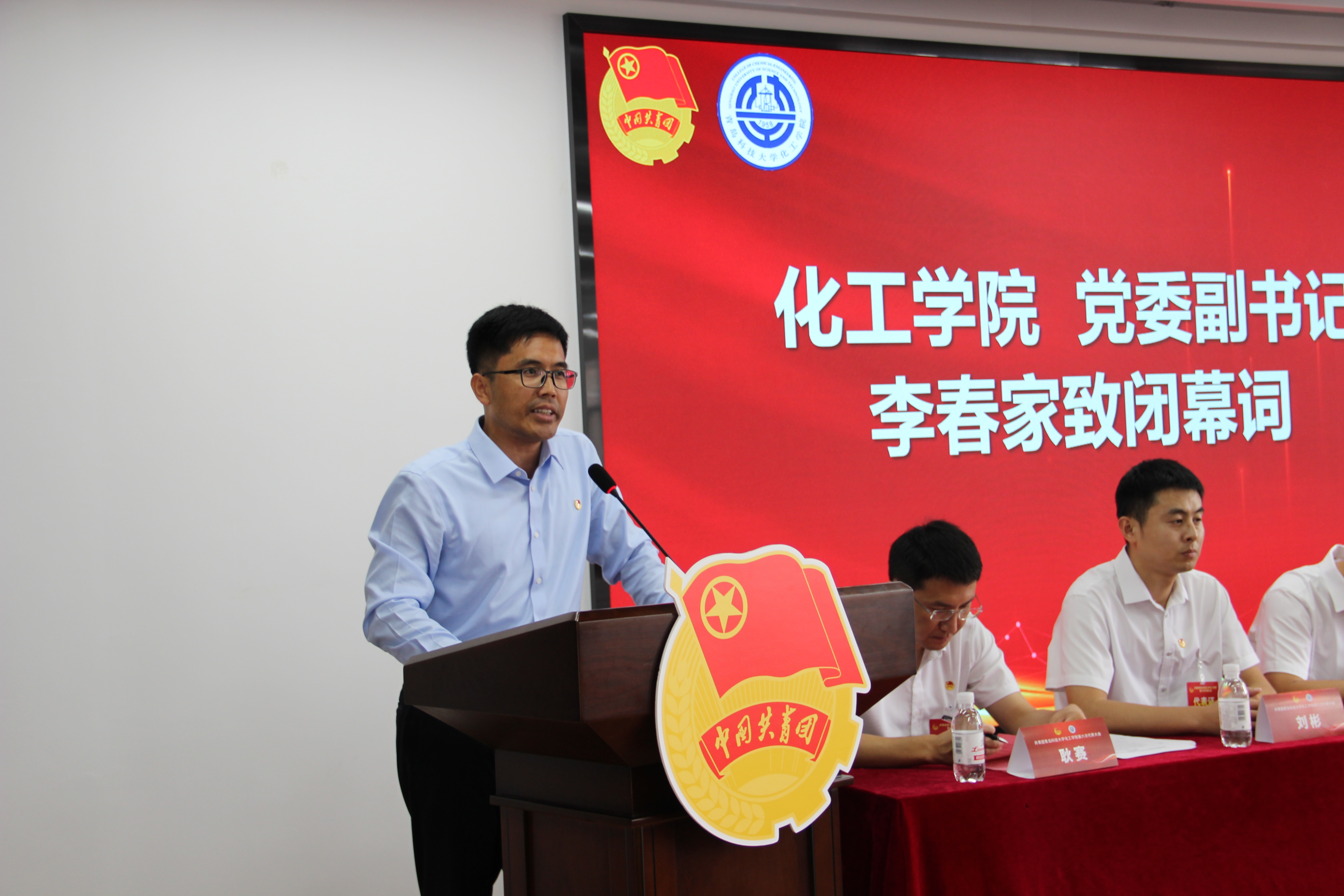 化工学院党委副书记李春家致闭幕词,他对上一届委员会的突出贡献表示感谢,并向新一届委员会当选委员表示衷心祝贺,他指出要认真学习、深刻领会,及时把会议精神传达到各级团组织和广大团员青年中去,同时,组织带领广大团员青年按照学校第十一次党代会提出的奋斗目标和发展思路,贯彻落实好本次“团代会”提出的各项任务,凝心聚力,苦干实干,以更加坚实的脚步、更加饱满的状态、更加奋进的姿态推动学院共青团工作再上新台阶。