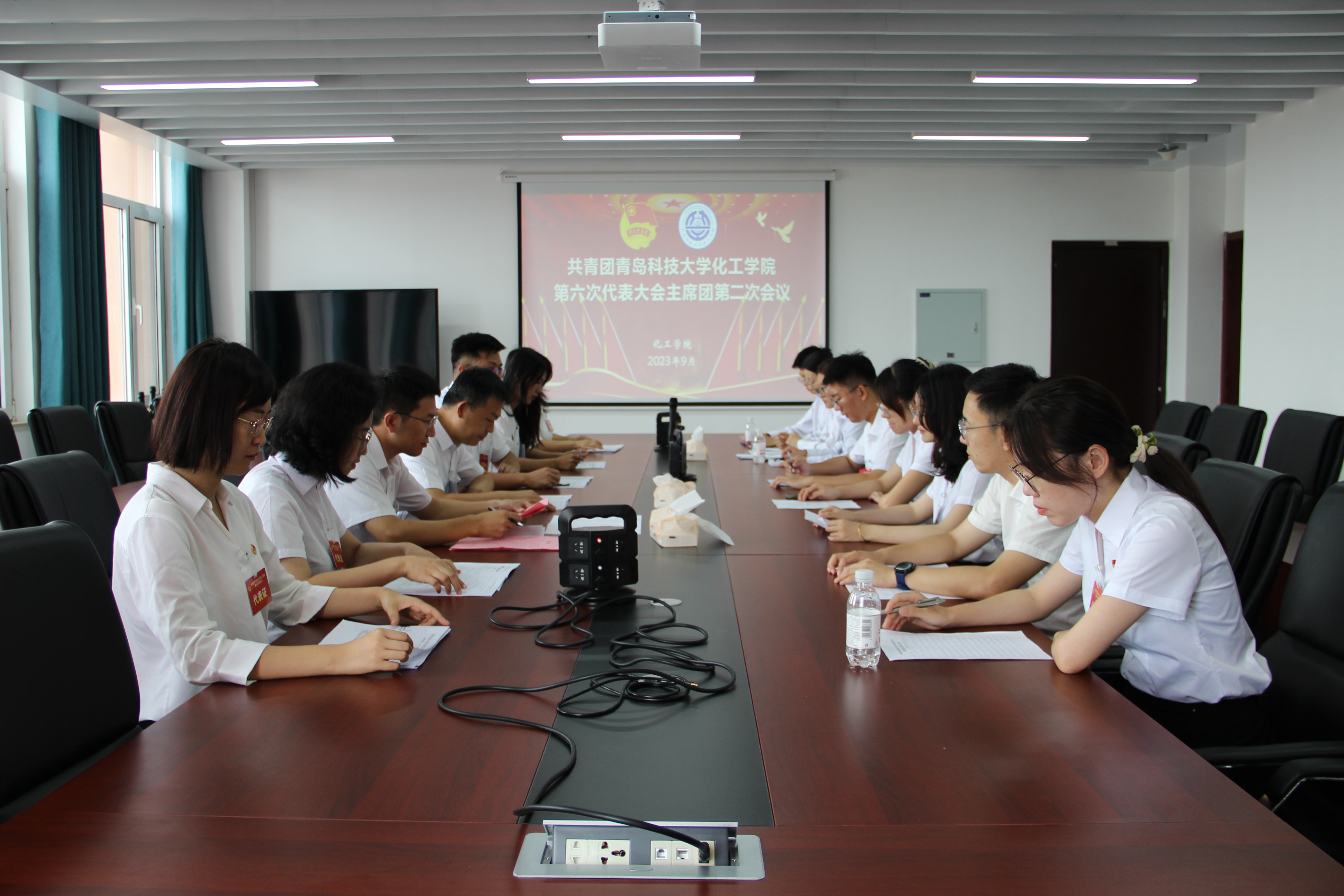 数据科学学院、材料学院、海洋学院、机电学院、高密校区、外语学院、材料学院、中德校区、化学院、数理学院、艺术学院、经管学院、中德科技学院、高分子学院、信息学院负责同志及团委老师参加大会开幕式。