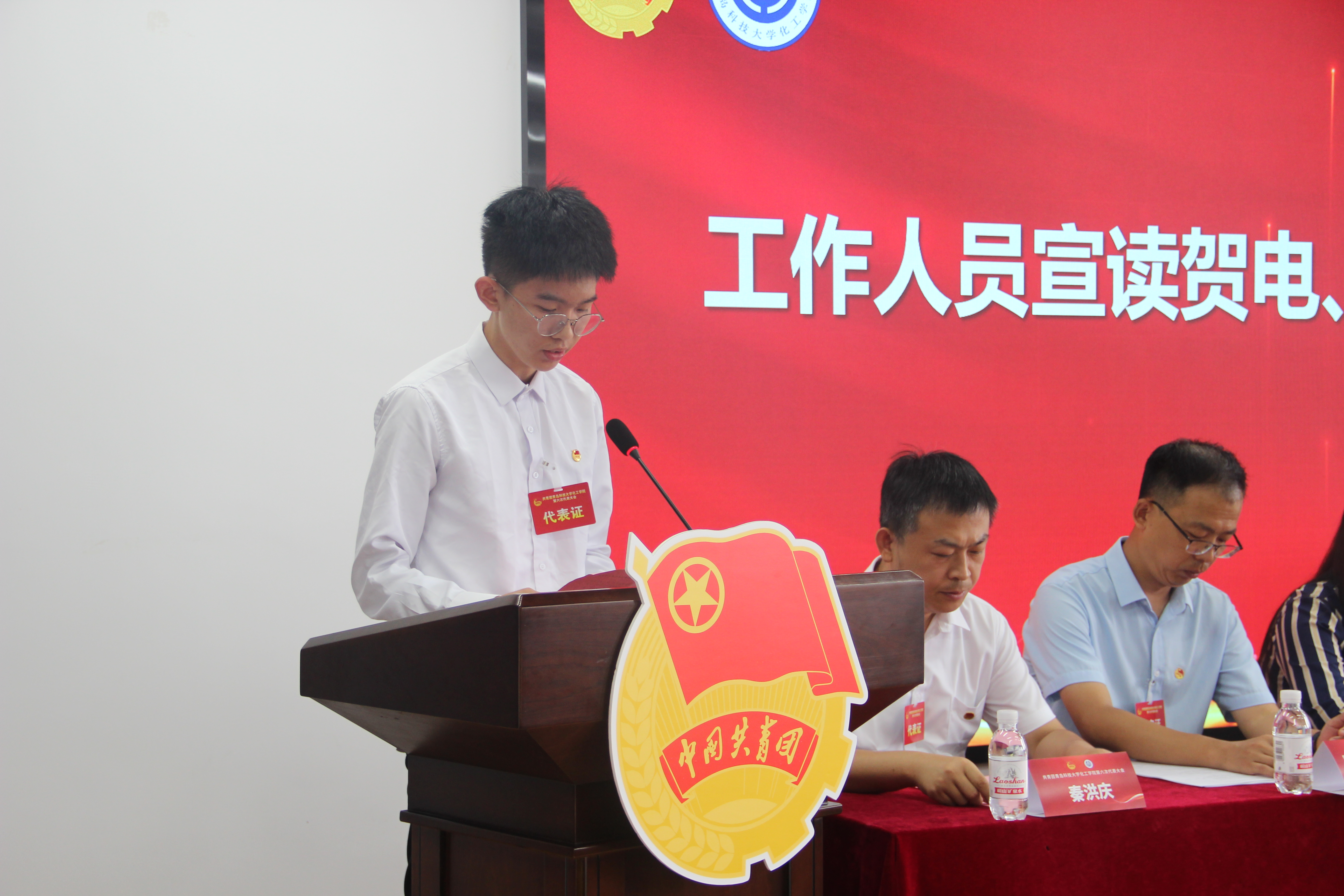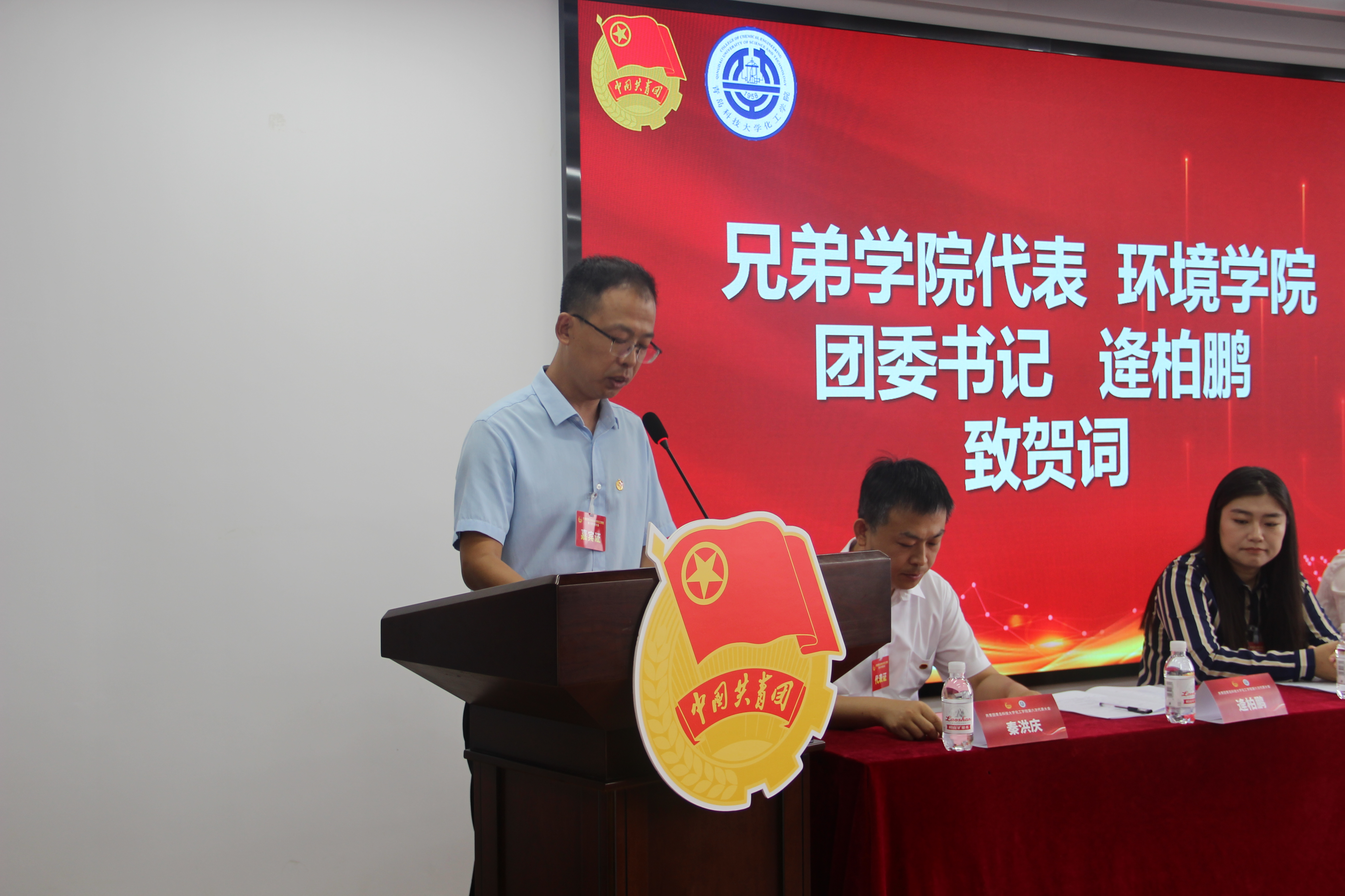 随后,大会宣读了校团委、各兄弟学院团委的贺电、贺信。环境学院团委书记逄柏鹏代表兄弟学院团委向大会致贺词。